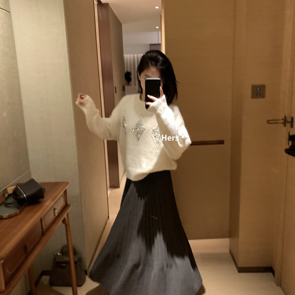 Hers-New простой темперамент для зимы и универсальная повседневная плиссированная длинная юбка в форме зонтика YS1-10550