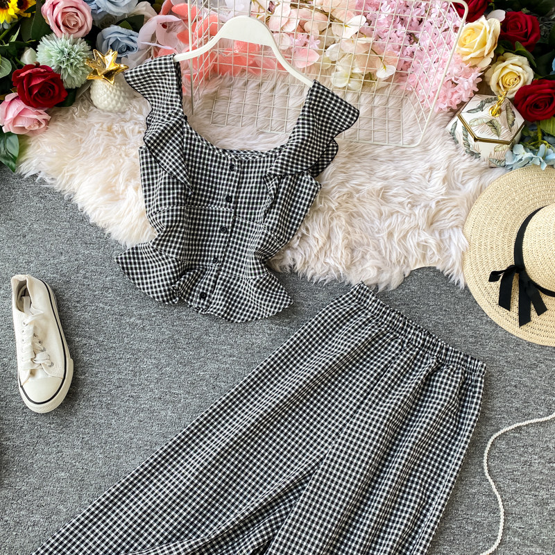 Ретро комплект, летняя майка топ, футболка, в западном стиле, сезон 2021