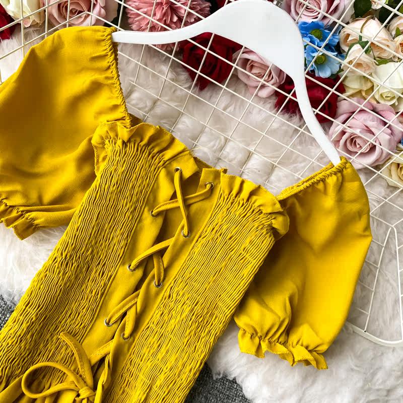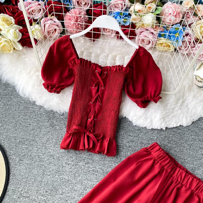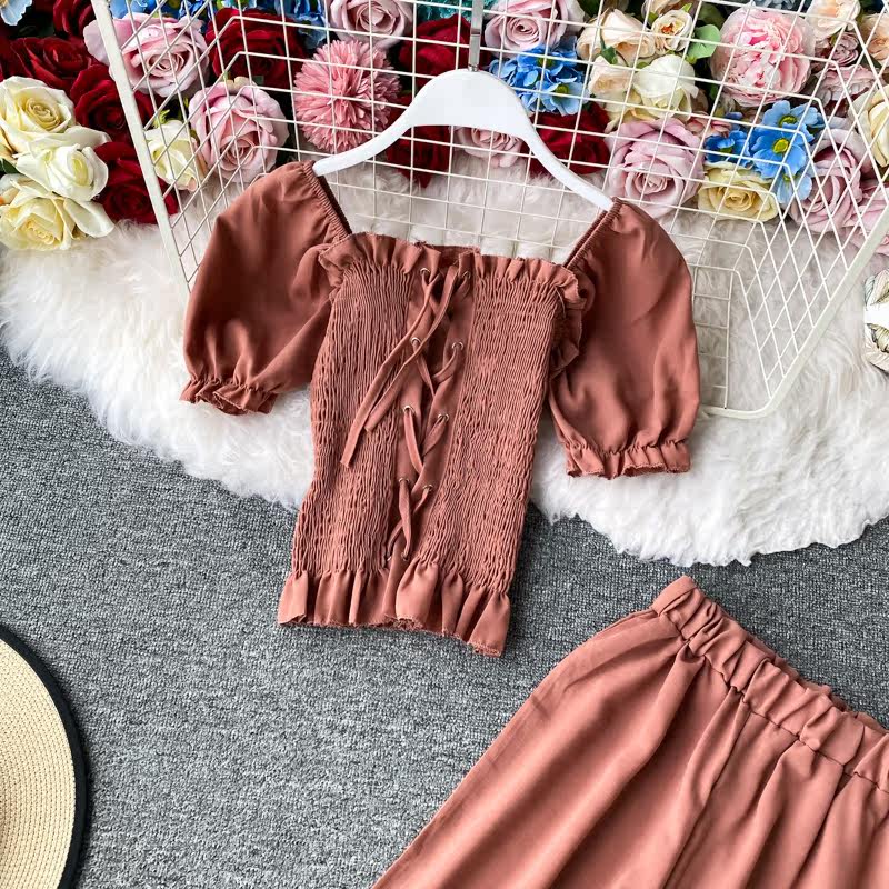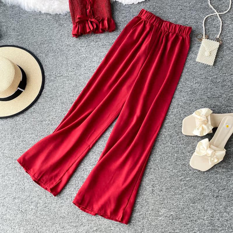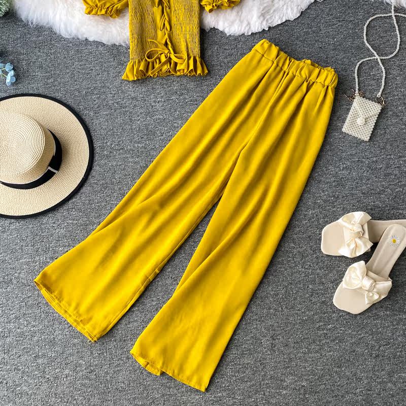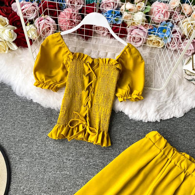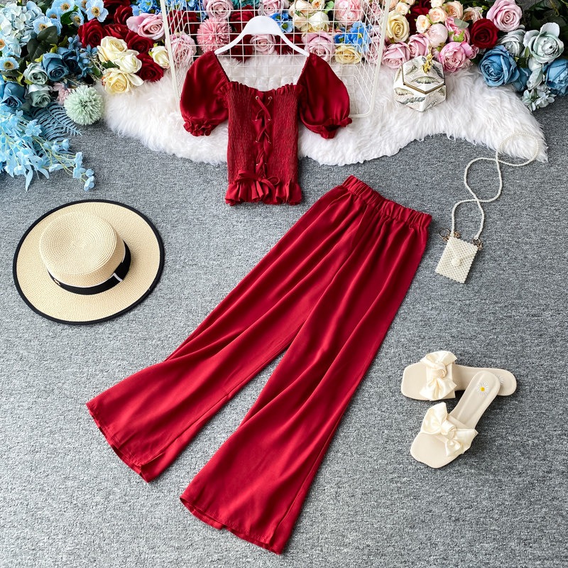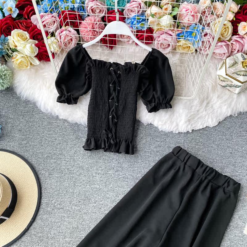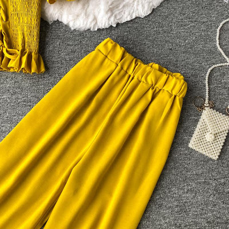Комплект, приталенный корсет, штаны, повседневные брюки, сезон 2021, квадратный вырез, высокая талия, свободный прямой крой