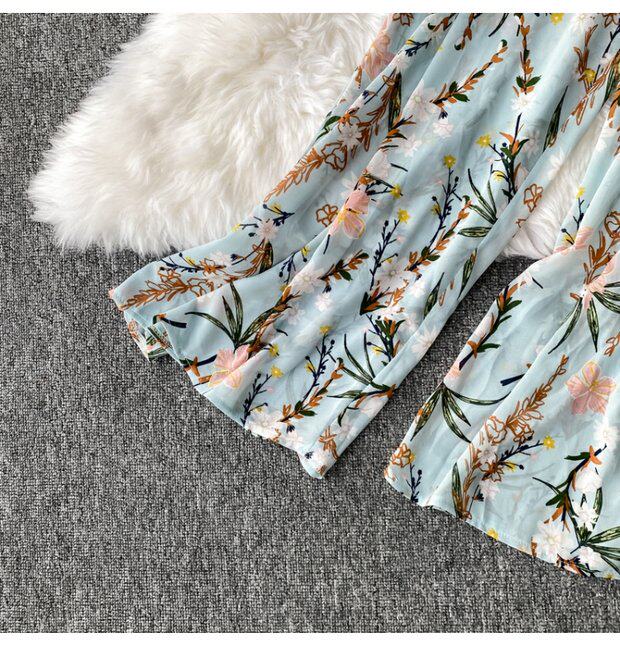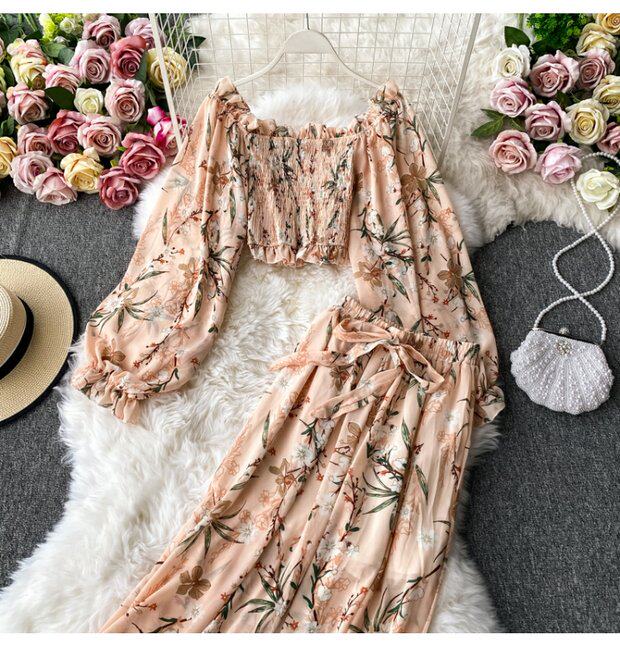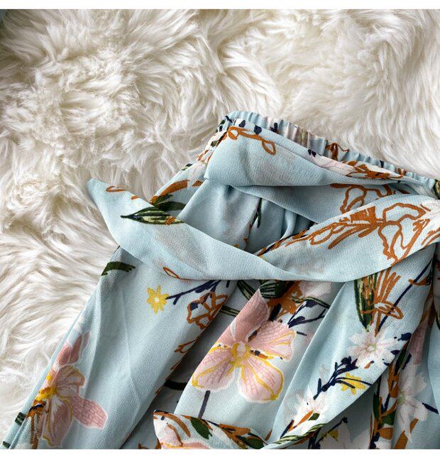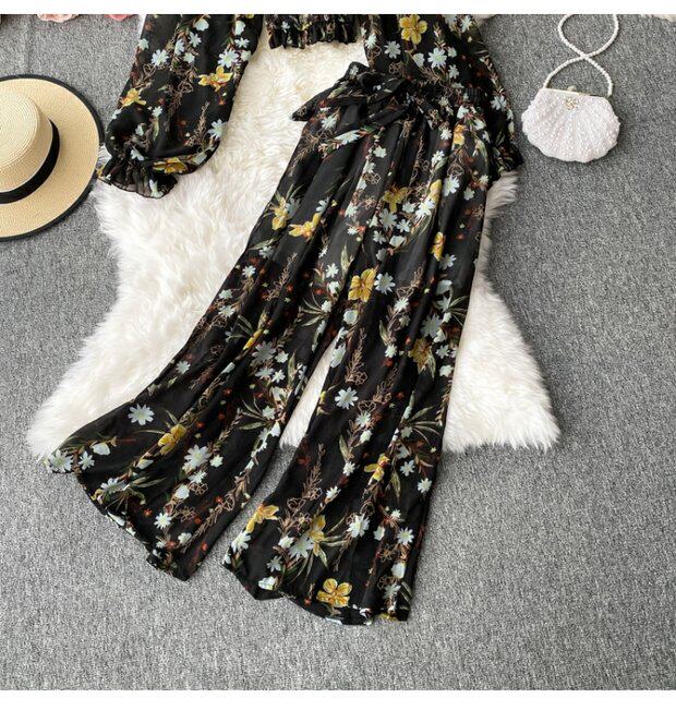 Осенний шифоновый короткий комплект, штаны, квадратный вырез, высокая талия