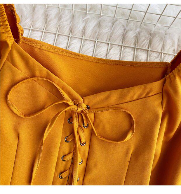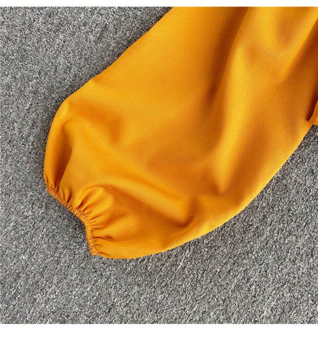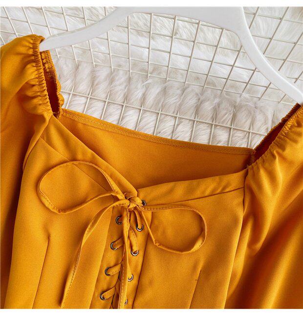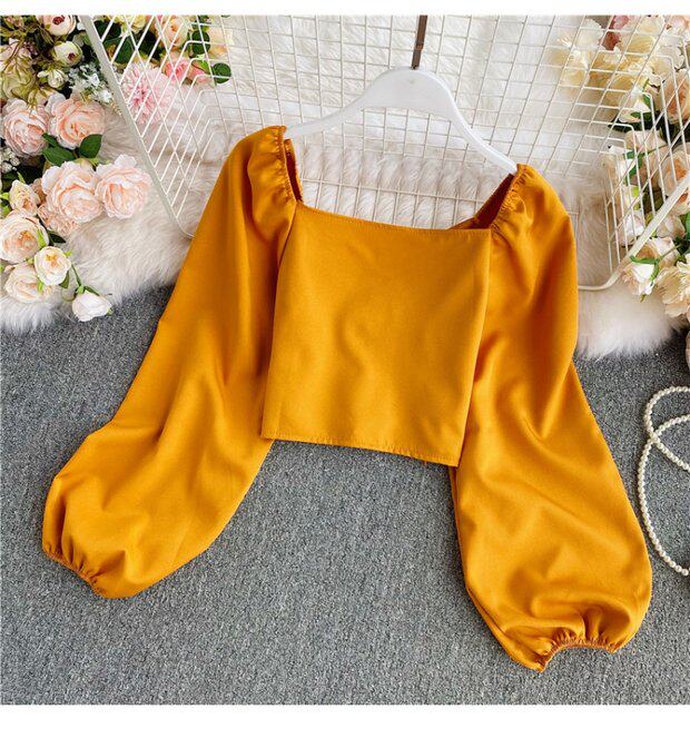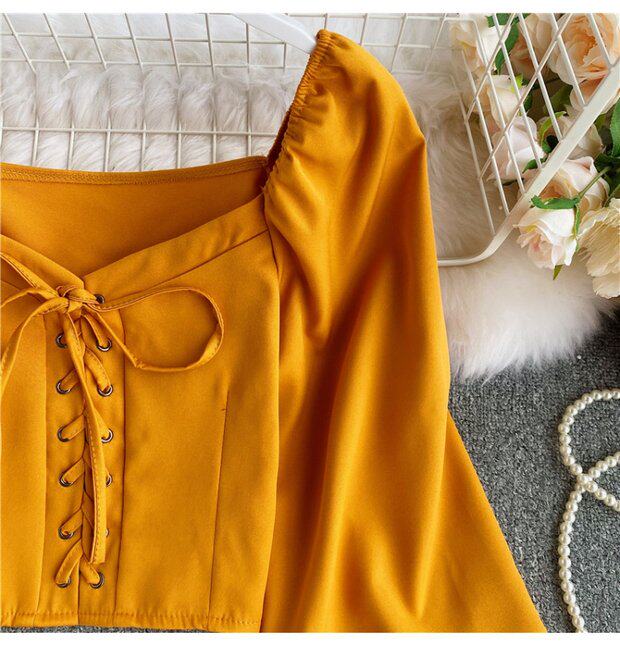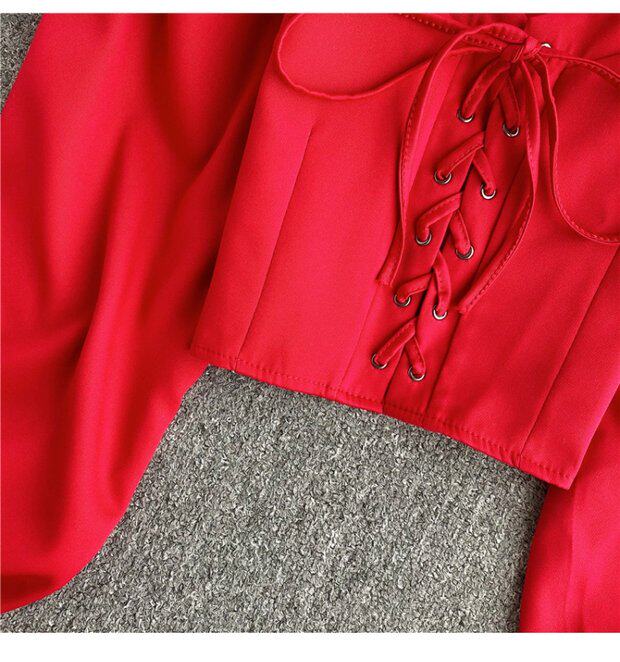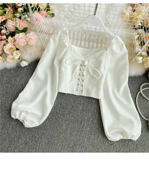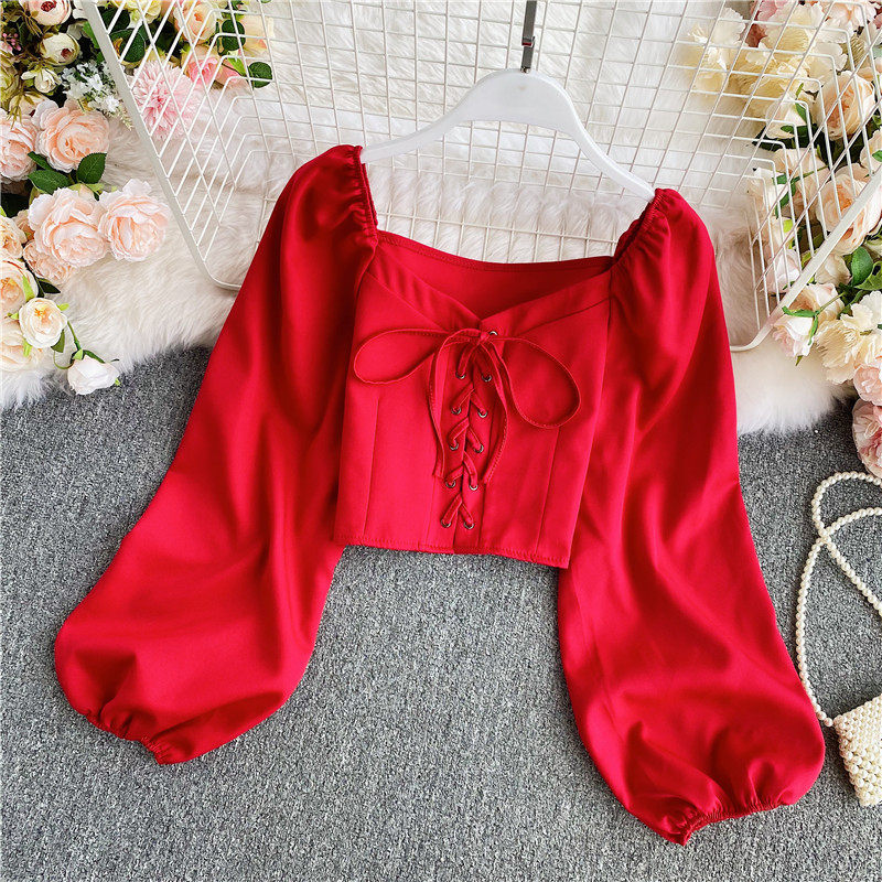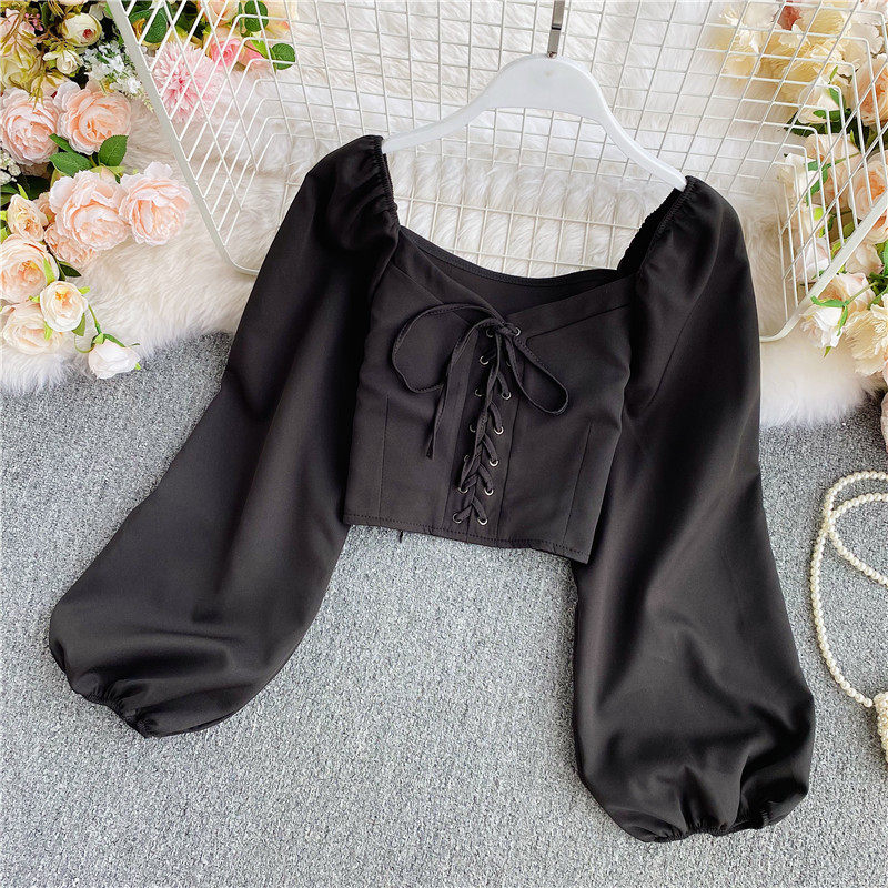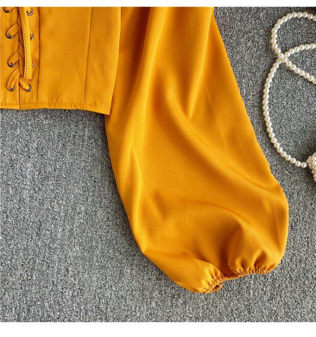 Осенняя модная ретро рубашка, короткий корсет, городской стиль, V-образный вырез, рукава фонарики