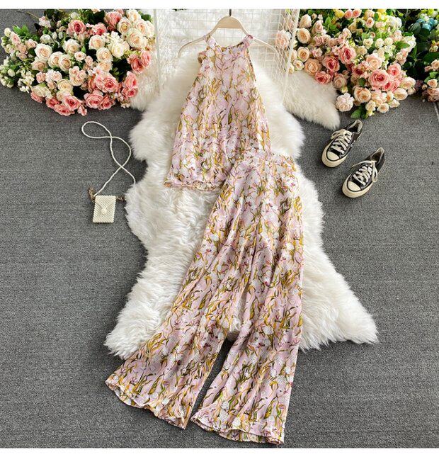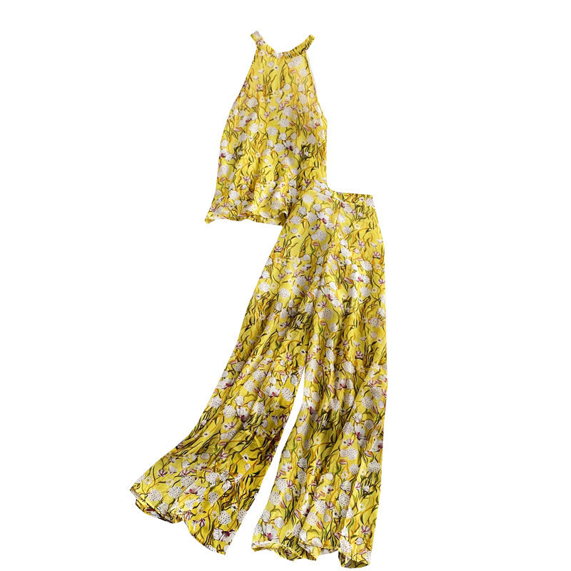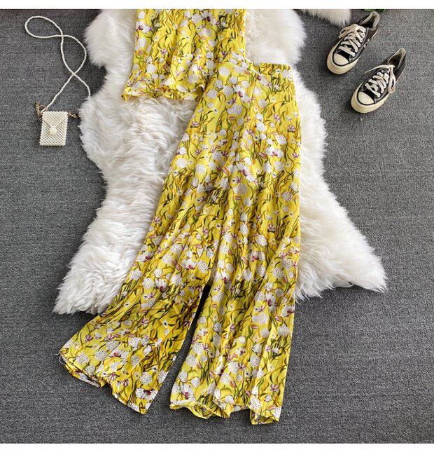 Модный шифоновый комплект, штаны, высокая талия