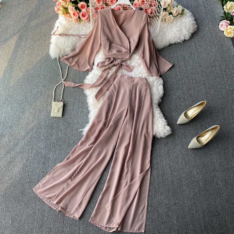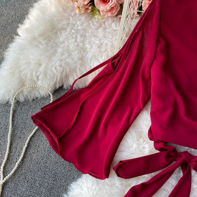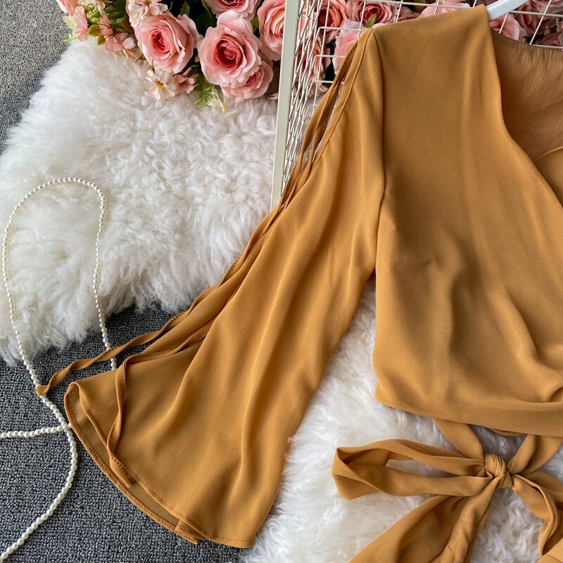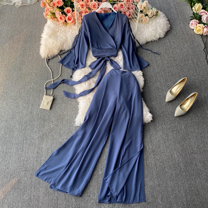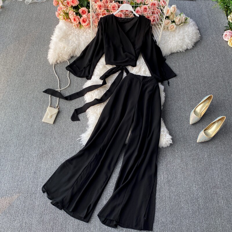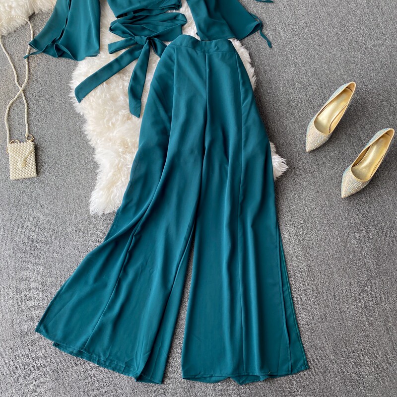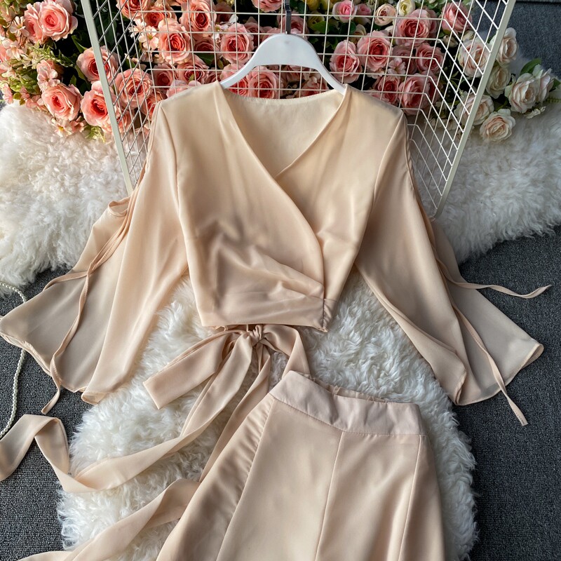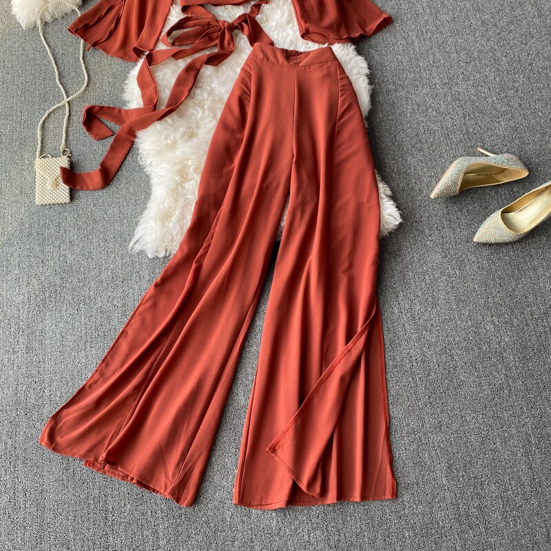 Ремень с бантиком, короткий шифоновый корсет, мегафон, комплект, штаны, V-образный вырез, высокая талия