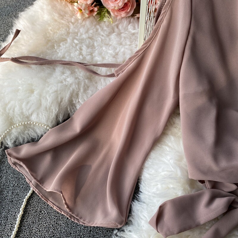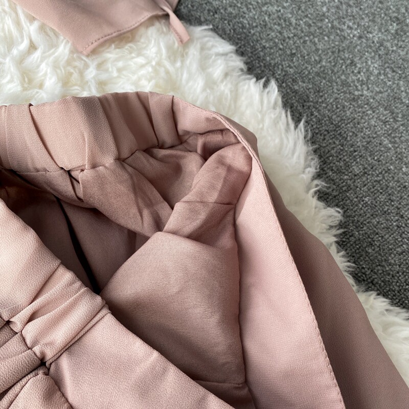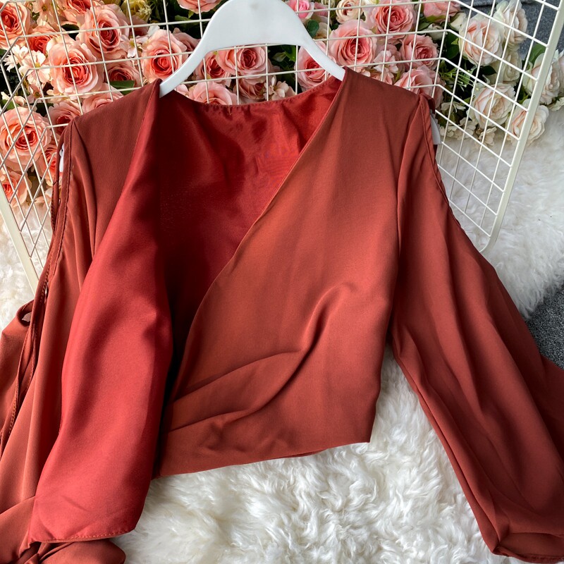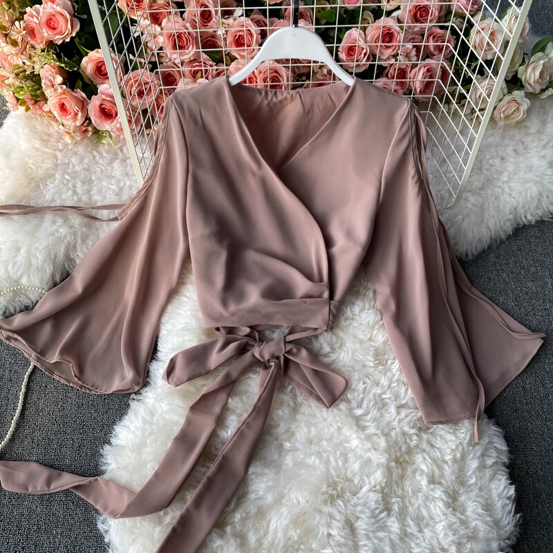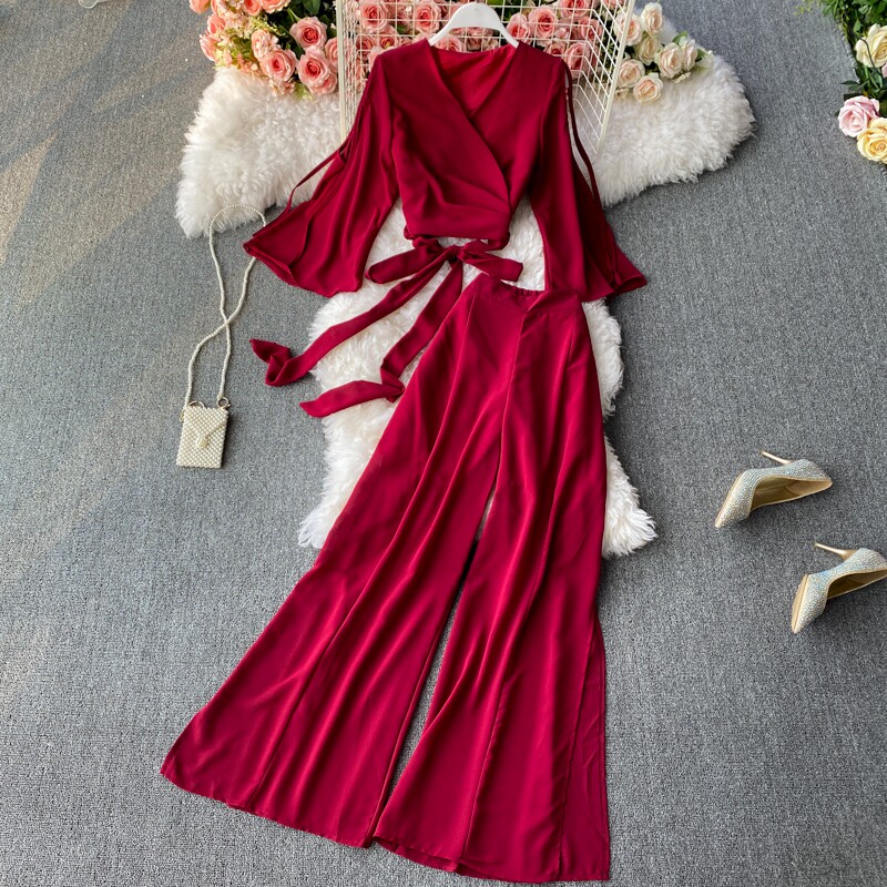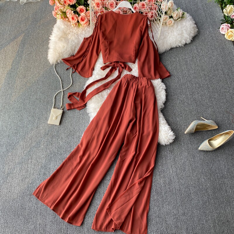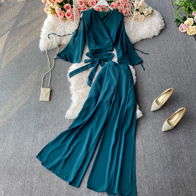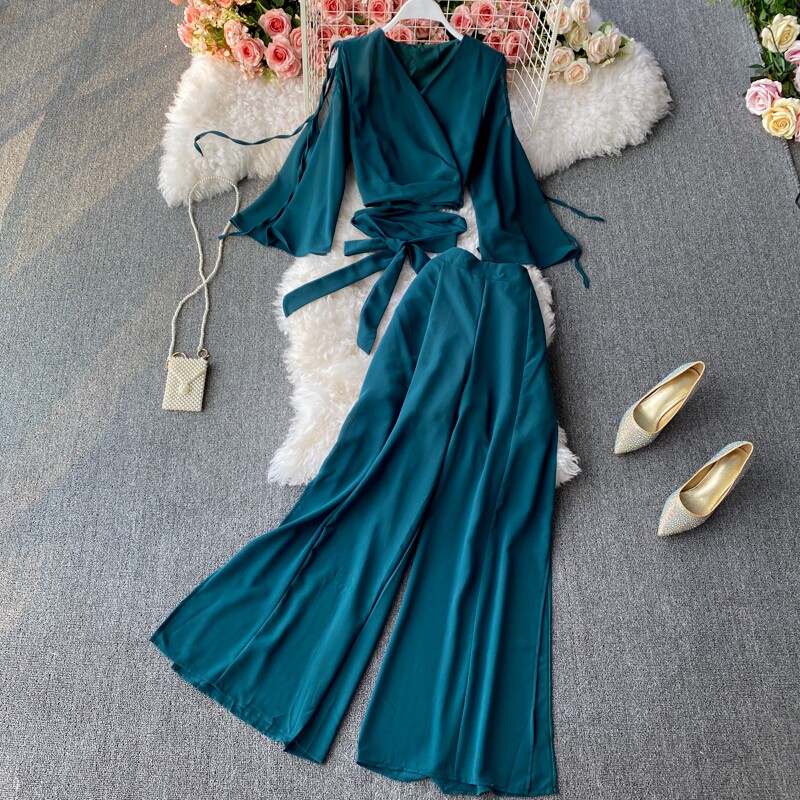 Ремень с бантиком, короткий шифоновый корсет, мегафон, комплект, штаны, V-образный вырез, высокая талия