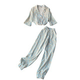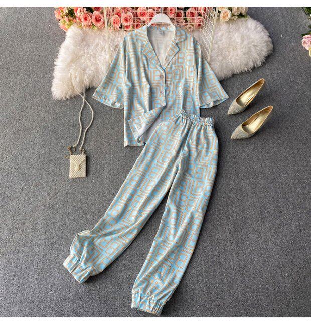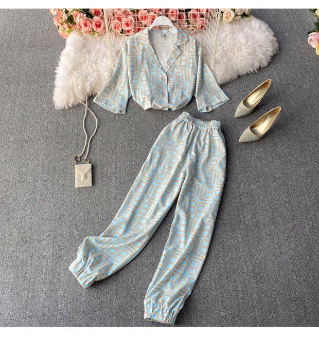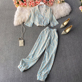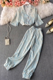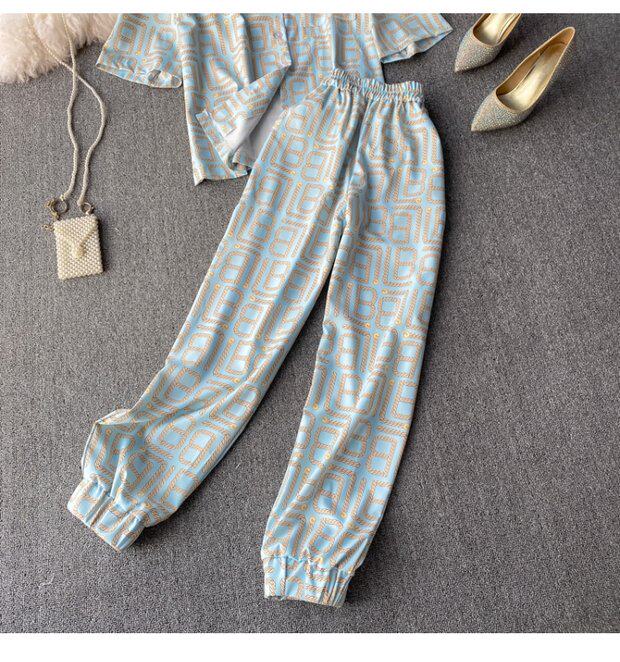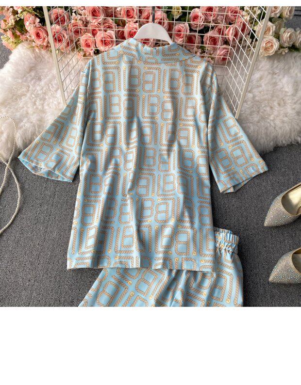 Летний универсальный костюм для отдыха, штаны, рубашка, кардиган, комплект, свободный крой, высокая талия