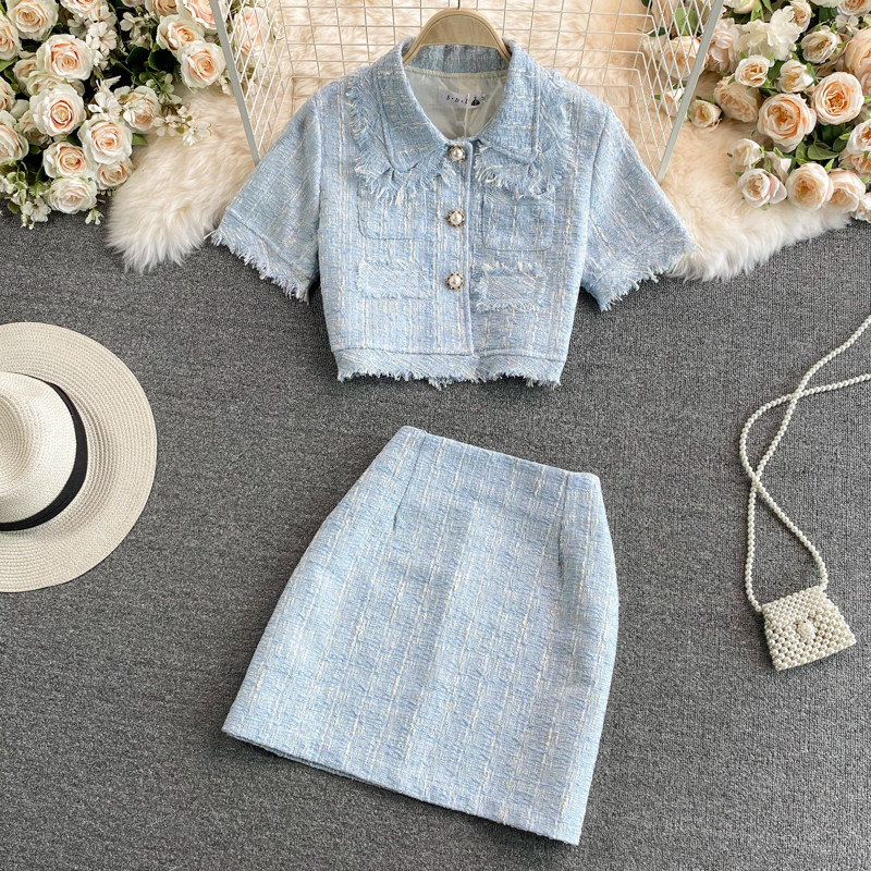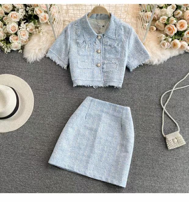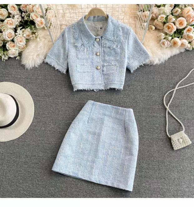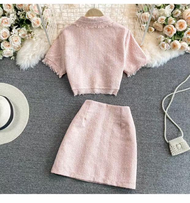 Комплект, летняя приталенная куртка, юбка, в стиле Шанель, 2021 года