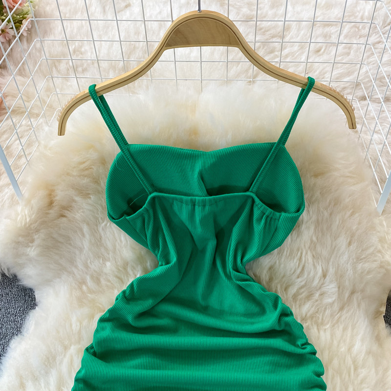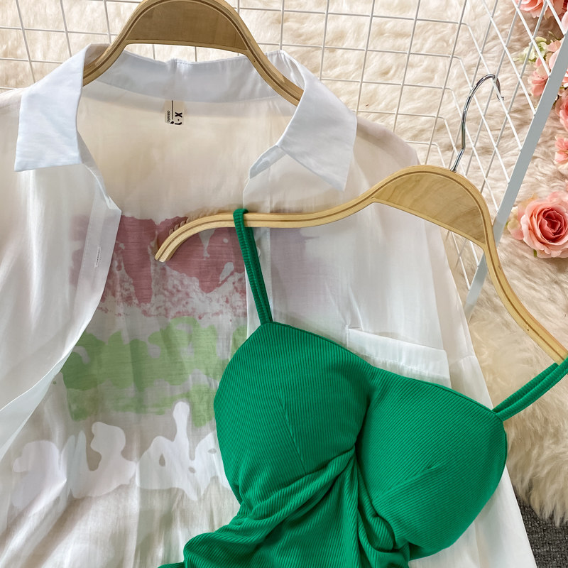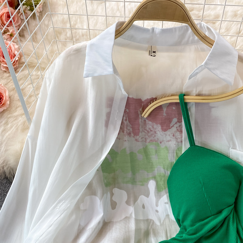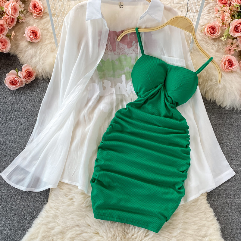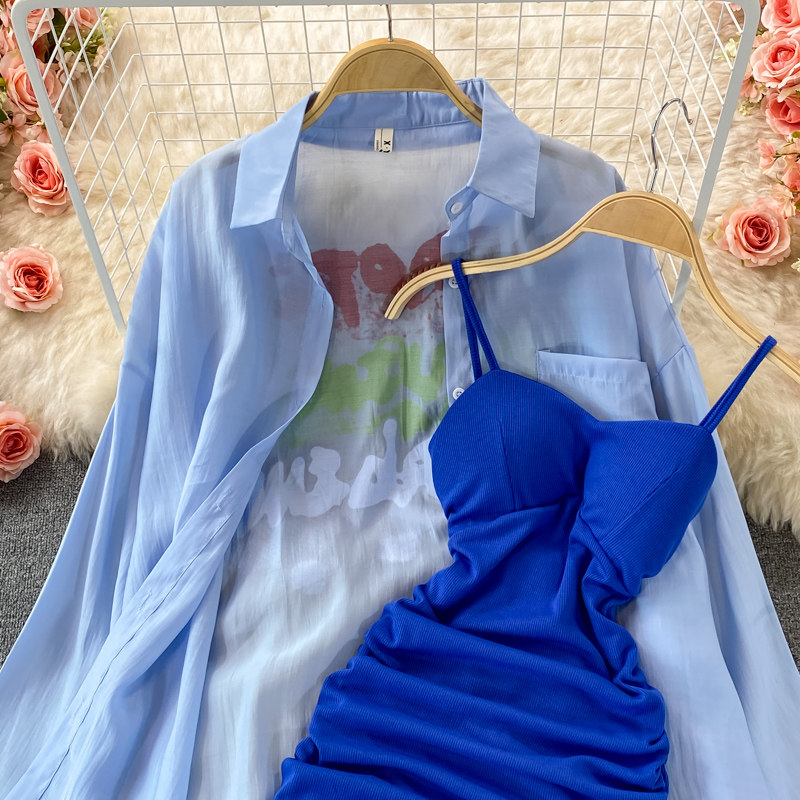 Летнее эластичное платье, комплект, тонкий лонгслив, в корейском стиле, с акцентом на бедрах, защита от солнца