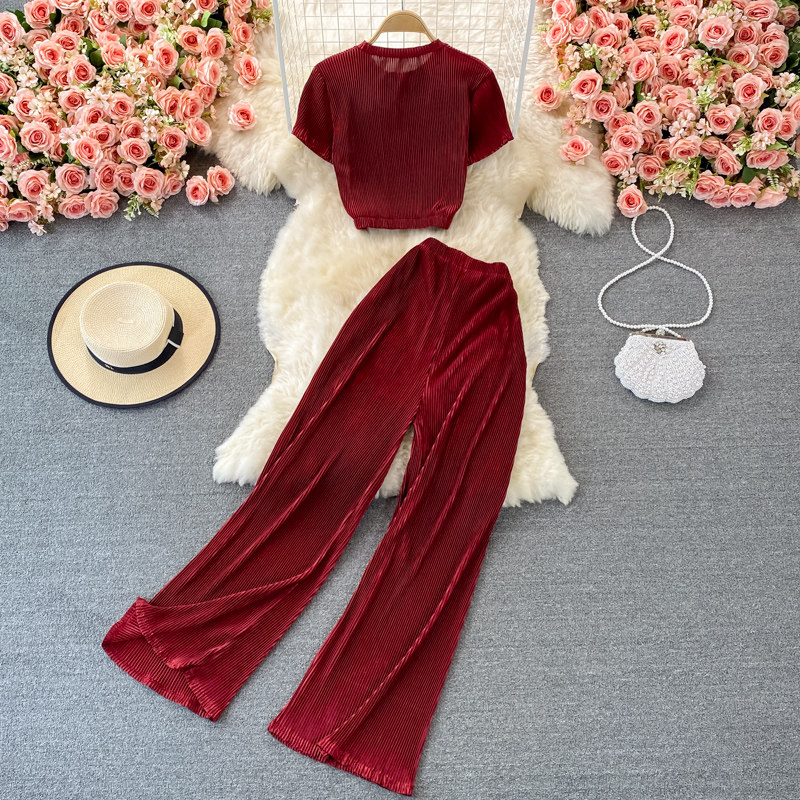 Штаны, приталенный комплект, корсет, футболка, высокая талия, свободный прямой крой