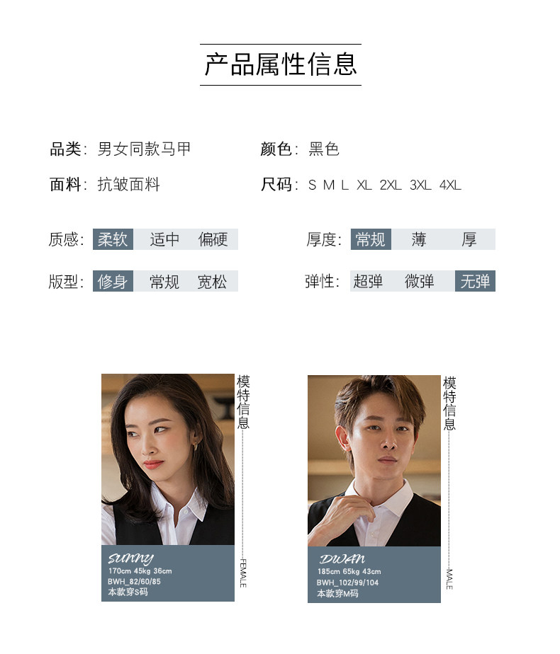 | Цвет: | Черный жилет + черные брюки (женские), Черный жилет + черные брюки (мужские), Черный жилет + черные брюки + белая рубашка (женская), Черный жилет + черные брюки + белая рубашка (мужская), Черный жилет (женский), Черный жилет (мужской) |