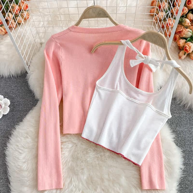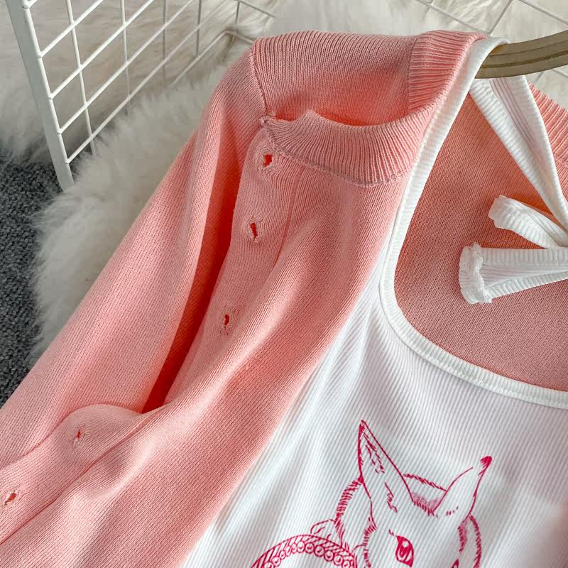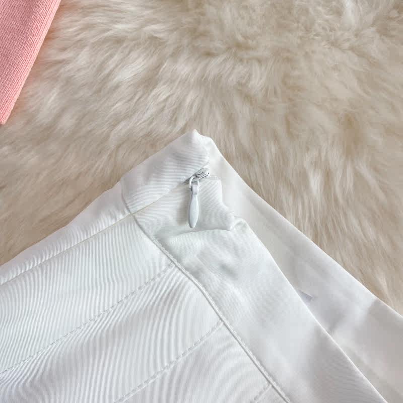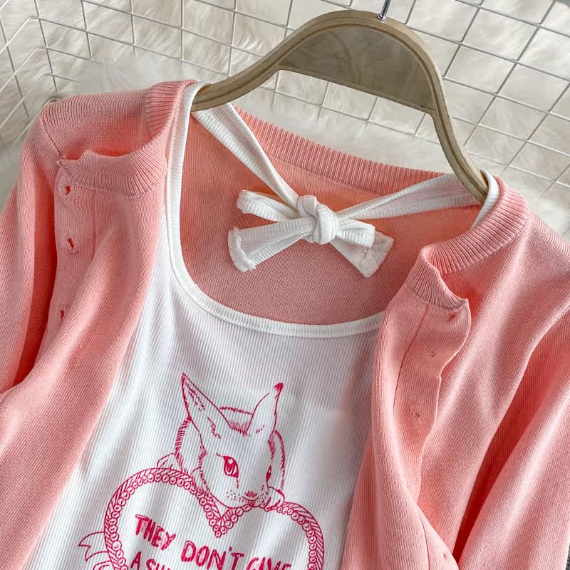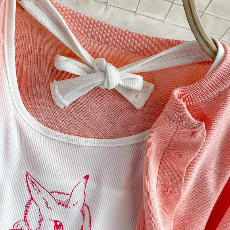 Розовая майка, топ с чашечками, комплект, юбка в складку, защита от солнца, открытые плечи, 3 предмета, высокая талия