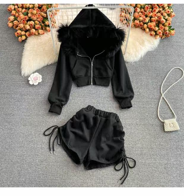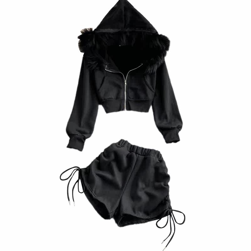 Комплект с капюшоном, осенняя толстовка с молнией, шорты, штаны, коллекция 2021, оверсайз