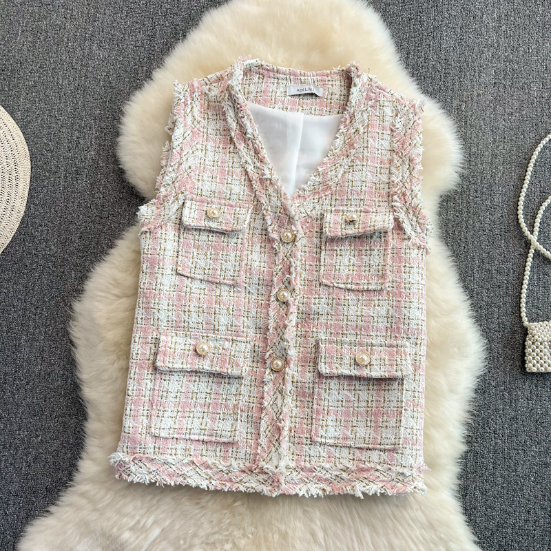 Жилет, куртка, в стиле Шанель, V-образный вырез, в западном стиле