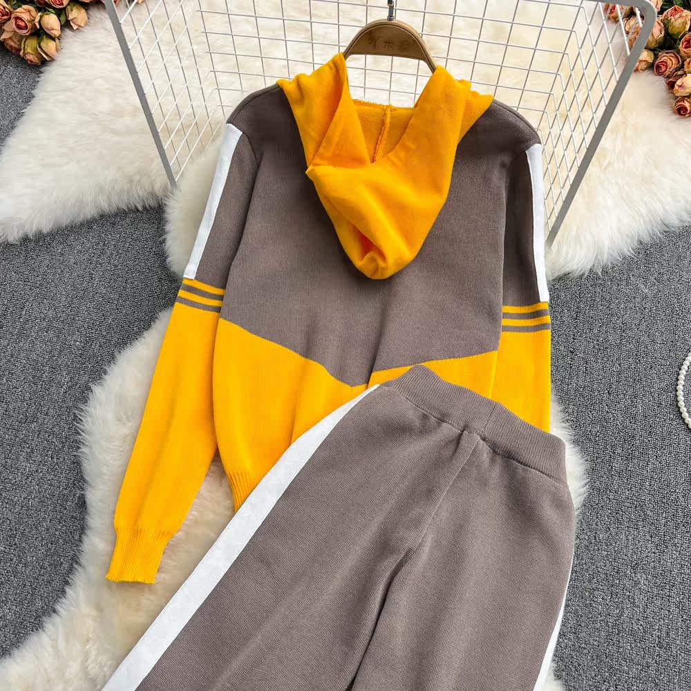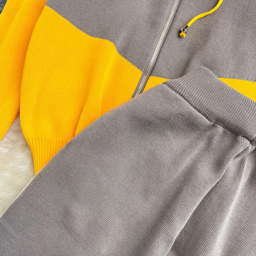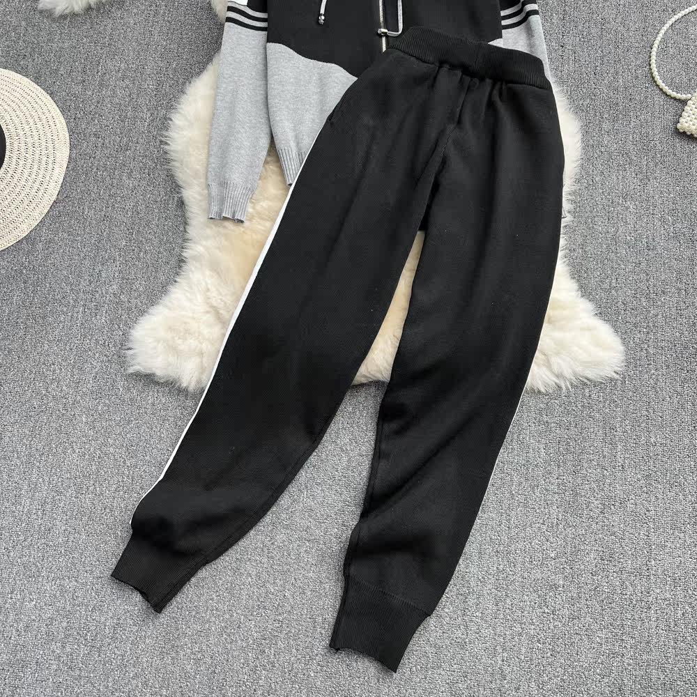 Комплект для отдыха, штаны с молнией, толстовка с капюшоном, высокая талия