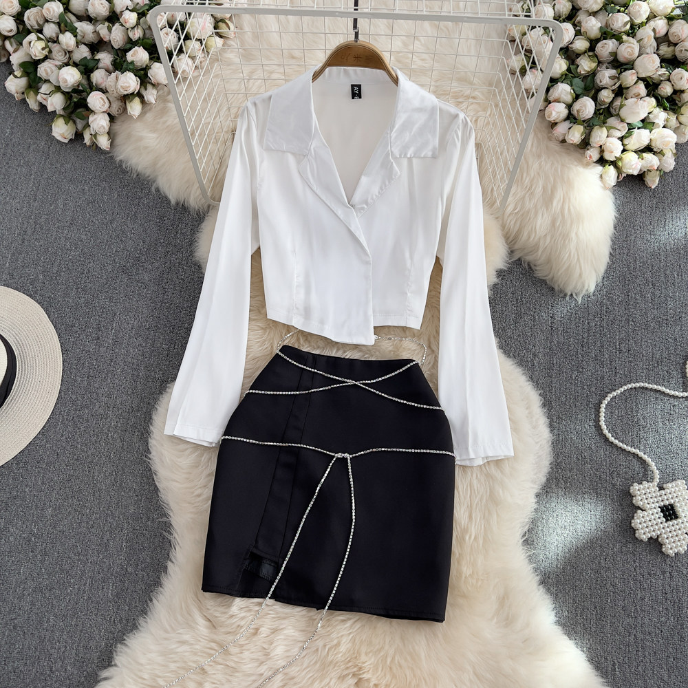 Короткий комплект для отдыха, сексуальная рубашка, мини-юбка, высокая талия, с акцентом на бедрах