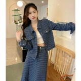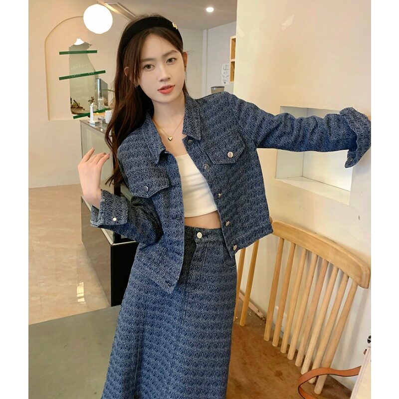 Джинсовая юбка для отдыха, куртка, комплект, большой размер, высокая талия, с вышивкой, по фигуре