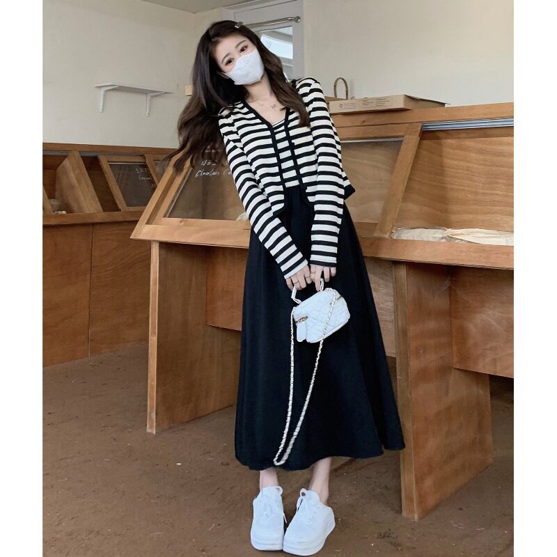 Осеннее платье, короткий кардиган, комплект, большой размер, французский стиль