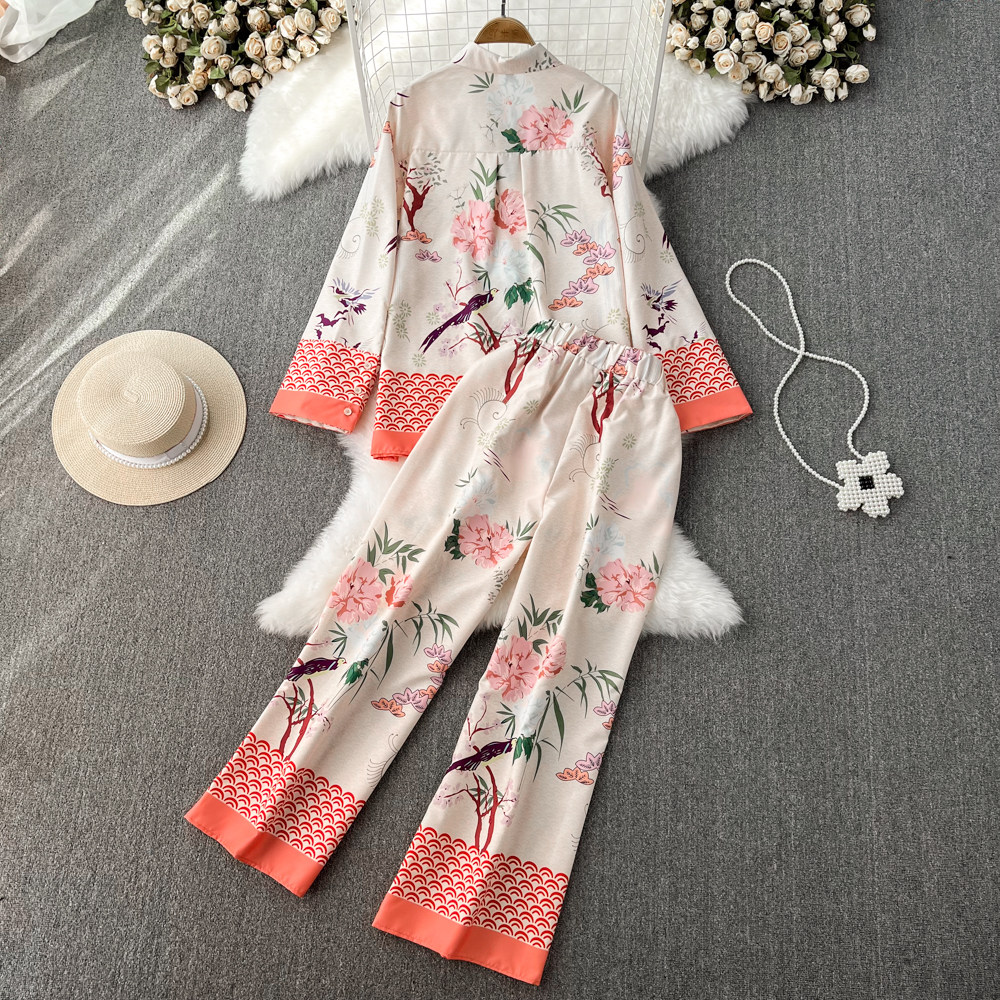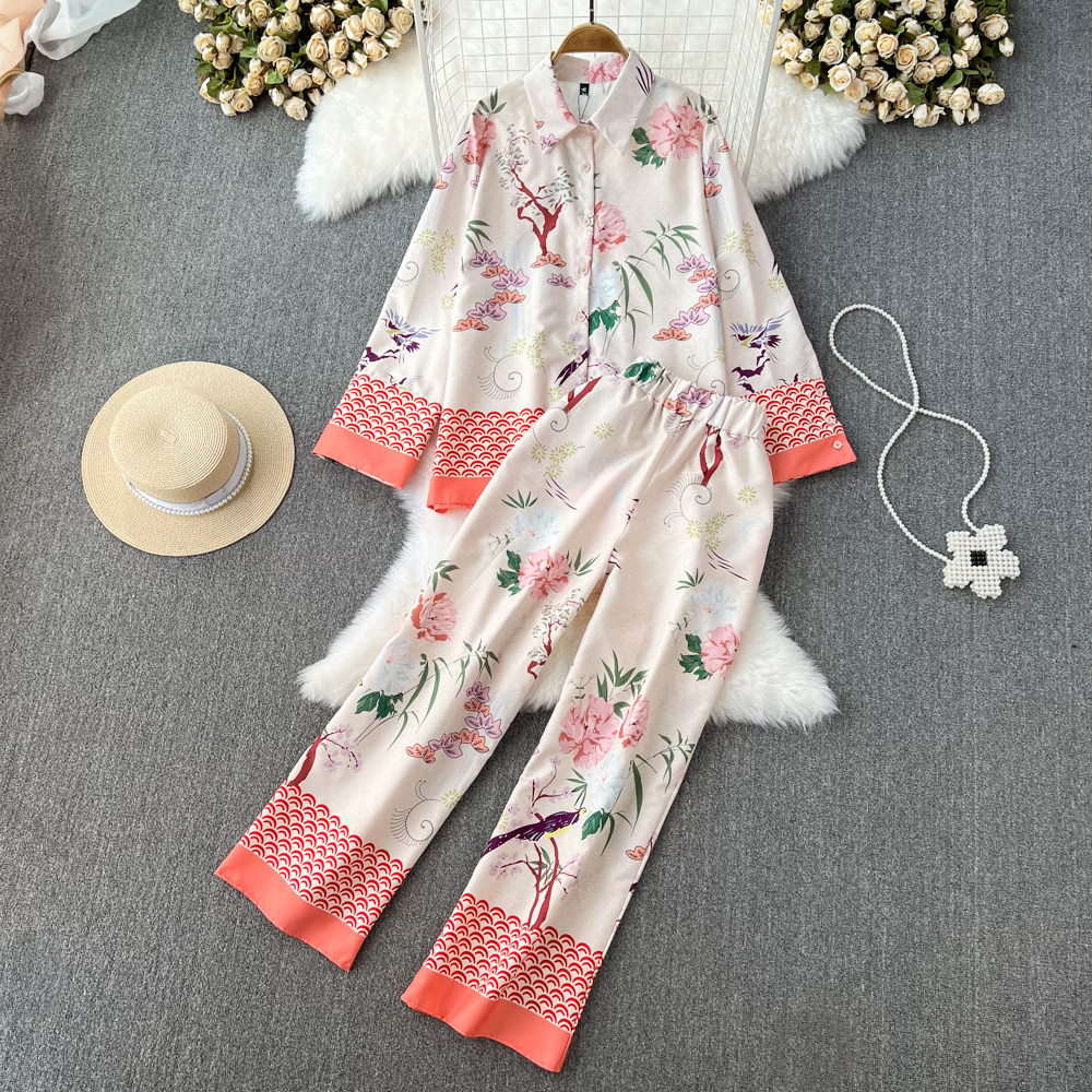 Пижама, комплект, лонгслив, приталенная рубашка, штаны, оверсайз, высокая талия, свободный прямой крой