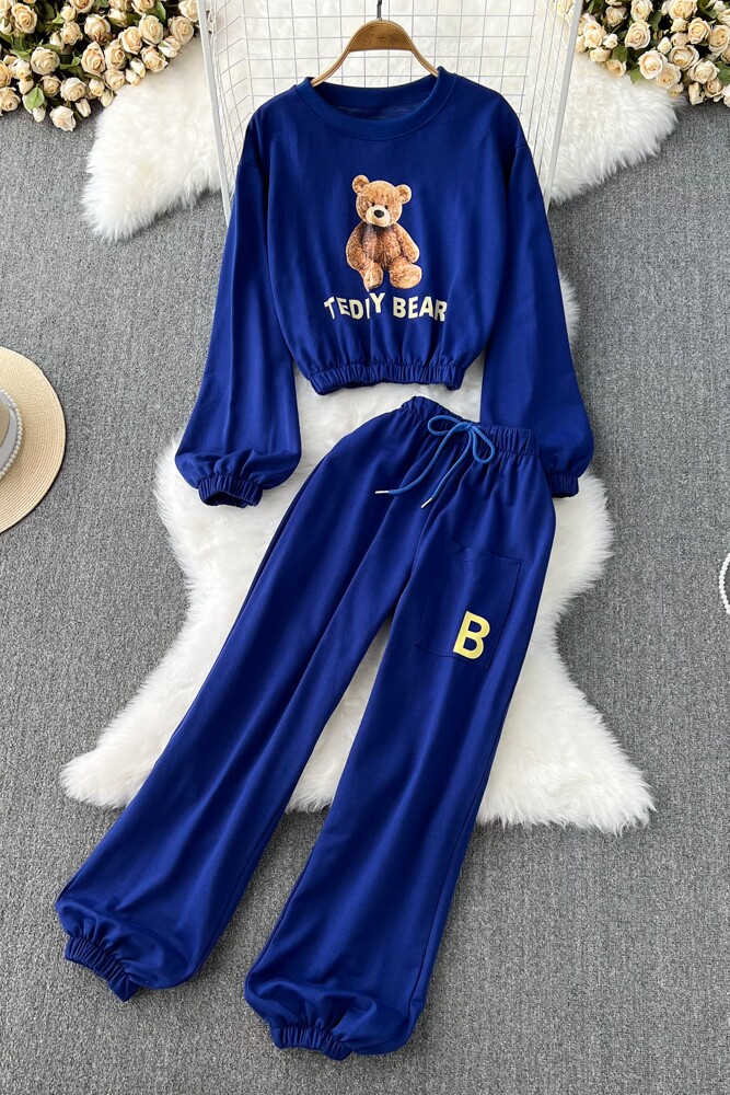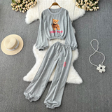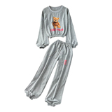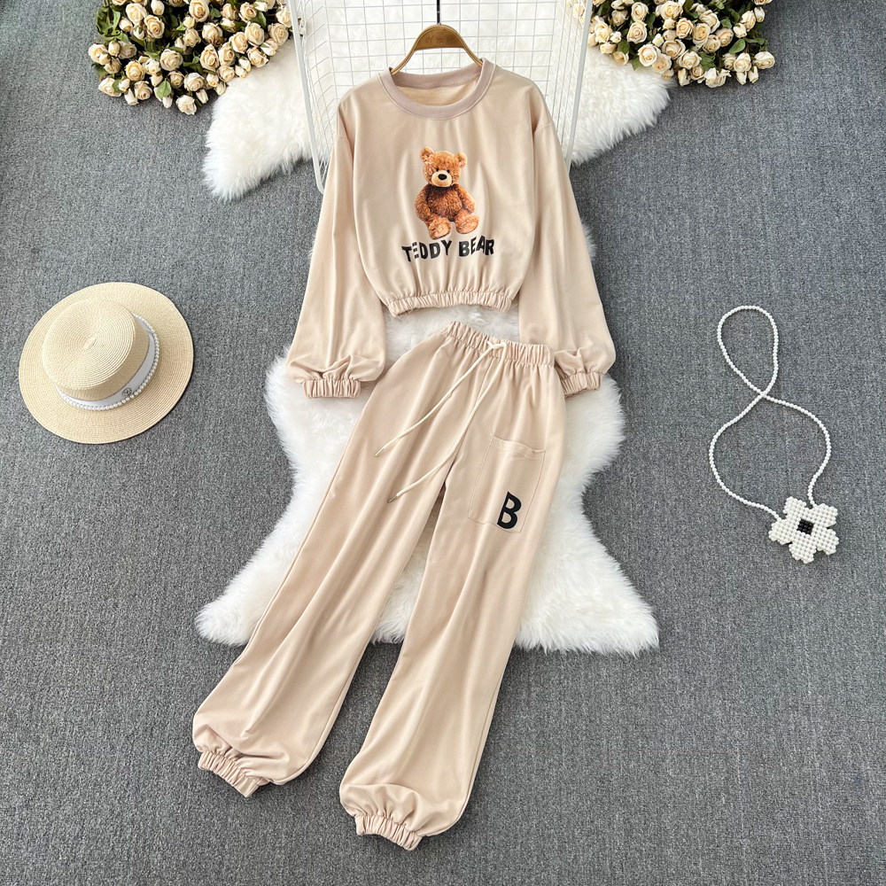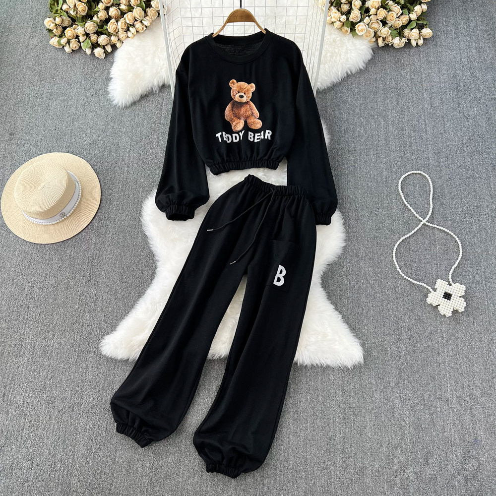 Мультяшный комплект с круглым воротником, лонгслив с буквами, короткая толстовка, штаны, высокая талия