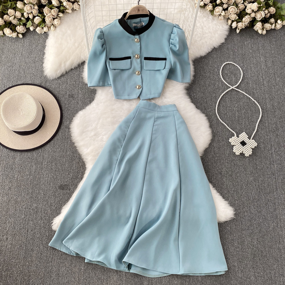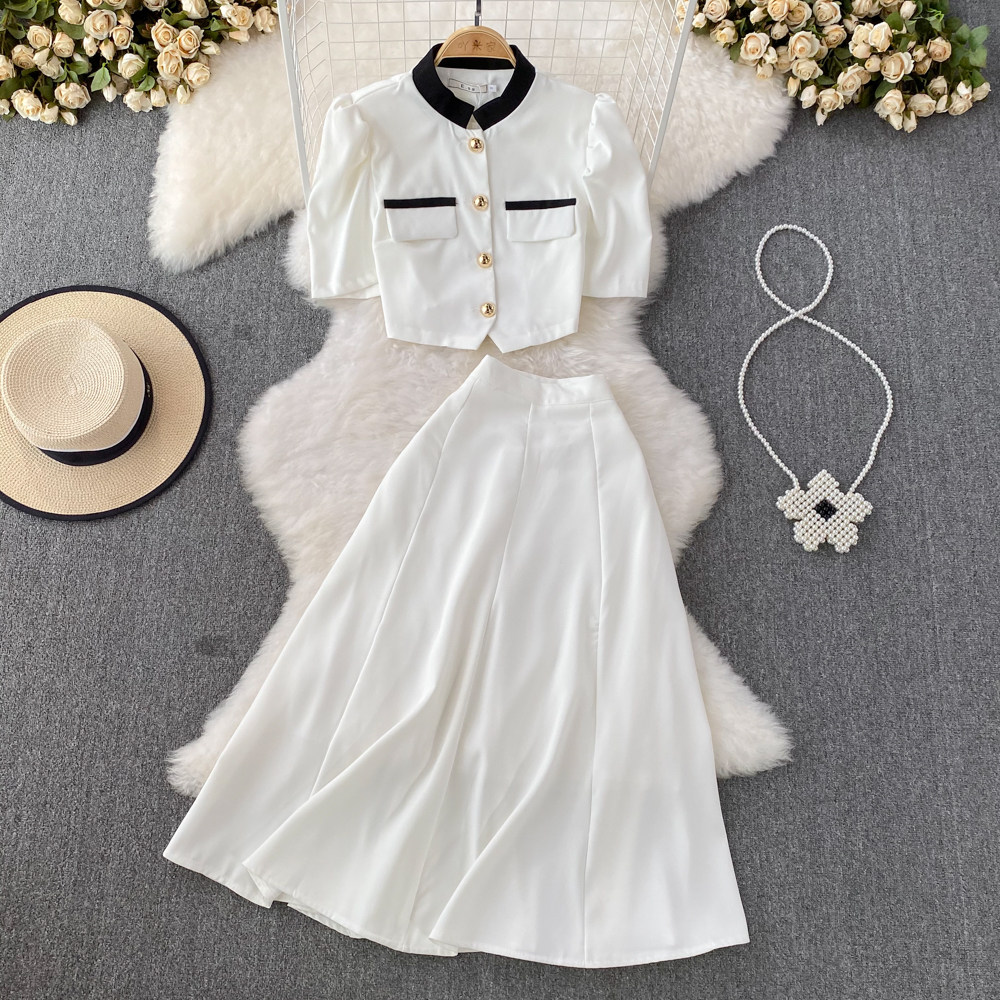 Комплект, рубашка, юбка, в стиле Шанель, короткий рукав, высокая талия