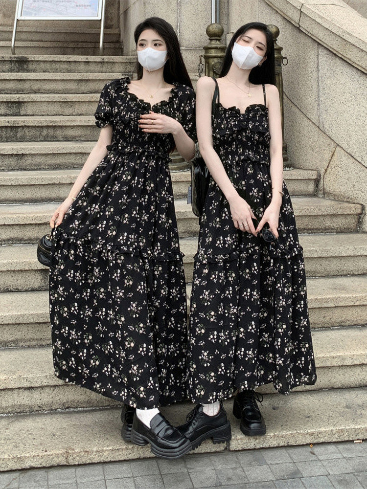Ретро осеннее платье, большой размер, французский стиль, короткий рукав, эффект подтяжки, в цветочек