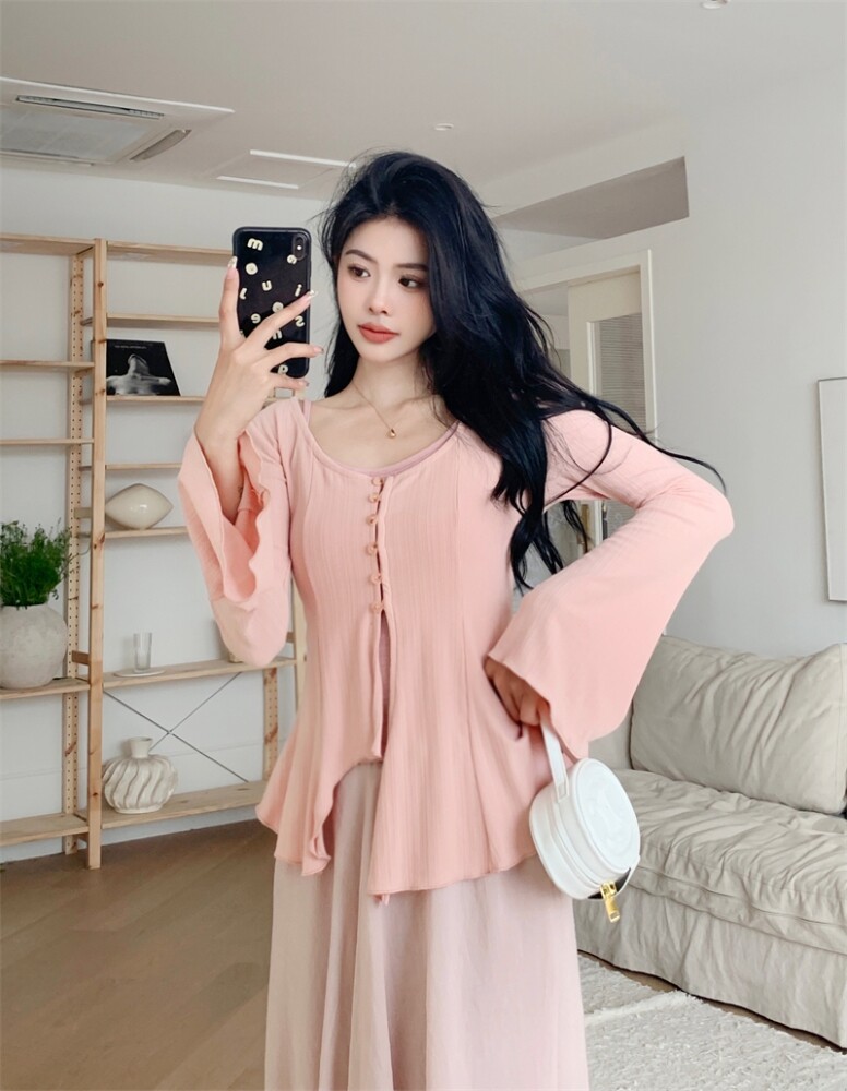 Комплект, ретро мегафон, летний кардиган, юбка, китайский стиль, большой размер, 3 предмета