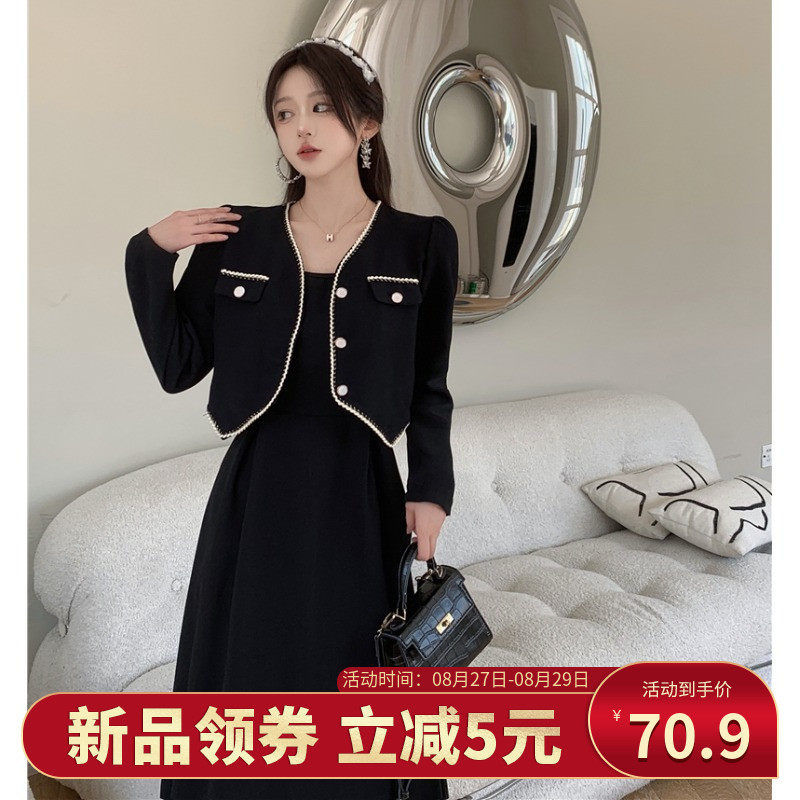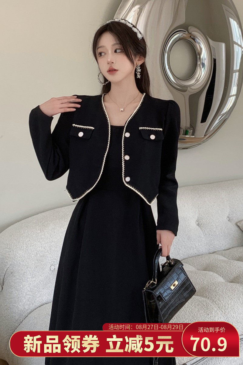 Короткое термобелье, черное платье, комплект, большой размер, в стиле Шанель, осеннее