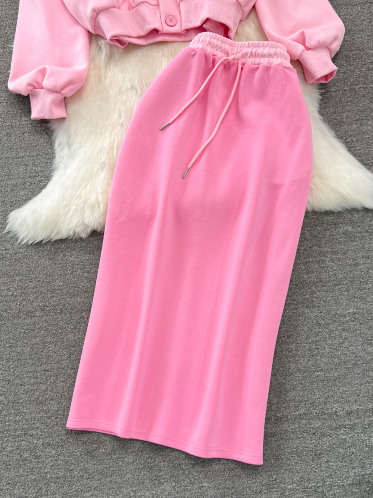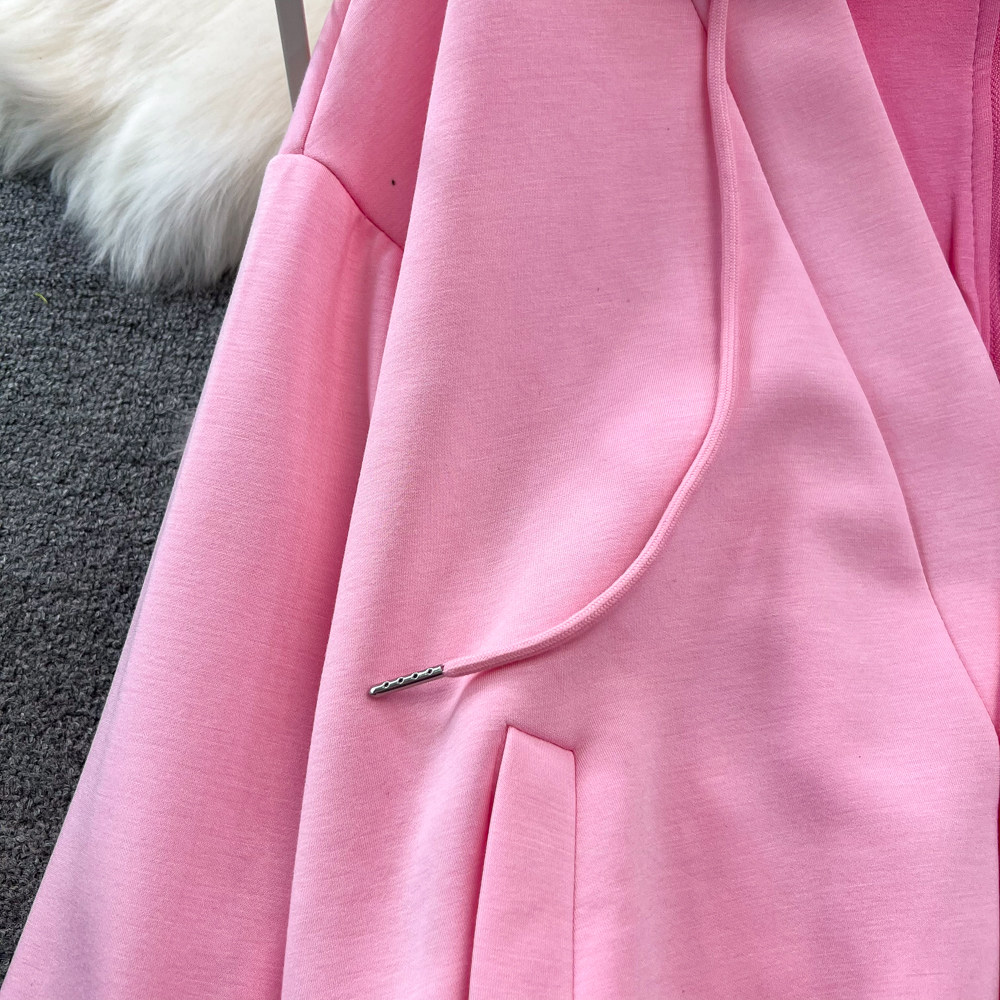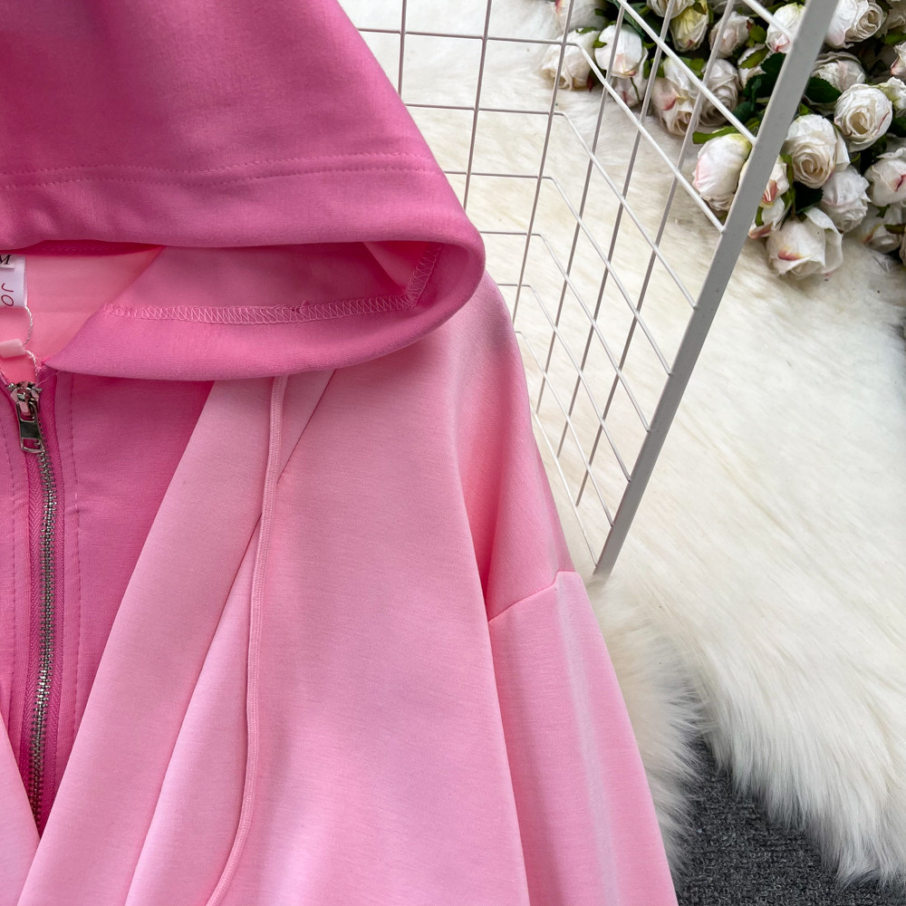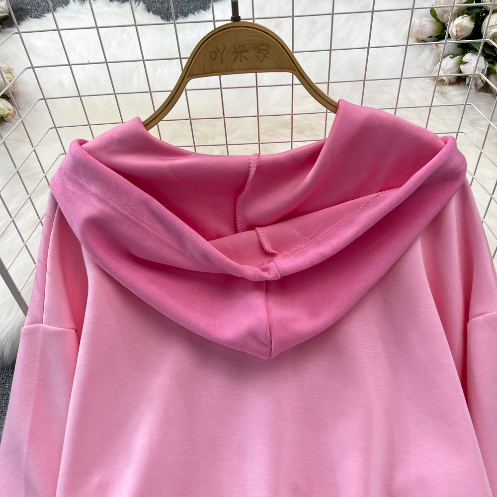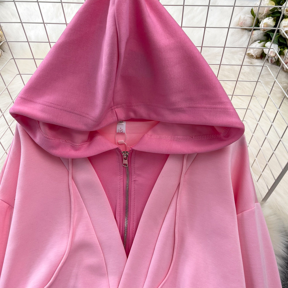 Комплект, лонгслив, толстовка с капюшоном, поясная сумка, юбка, в корейском стиле, высокая талия