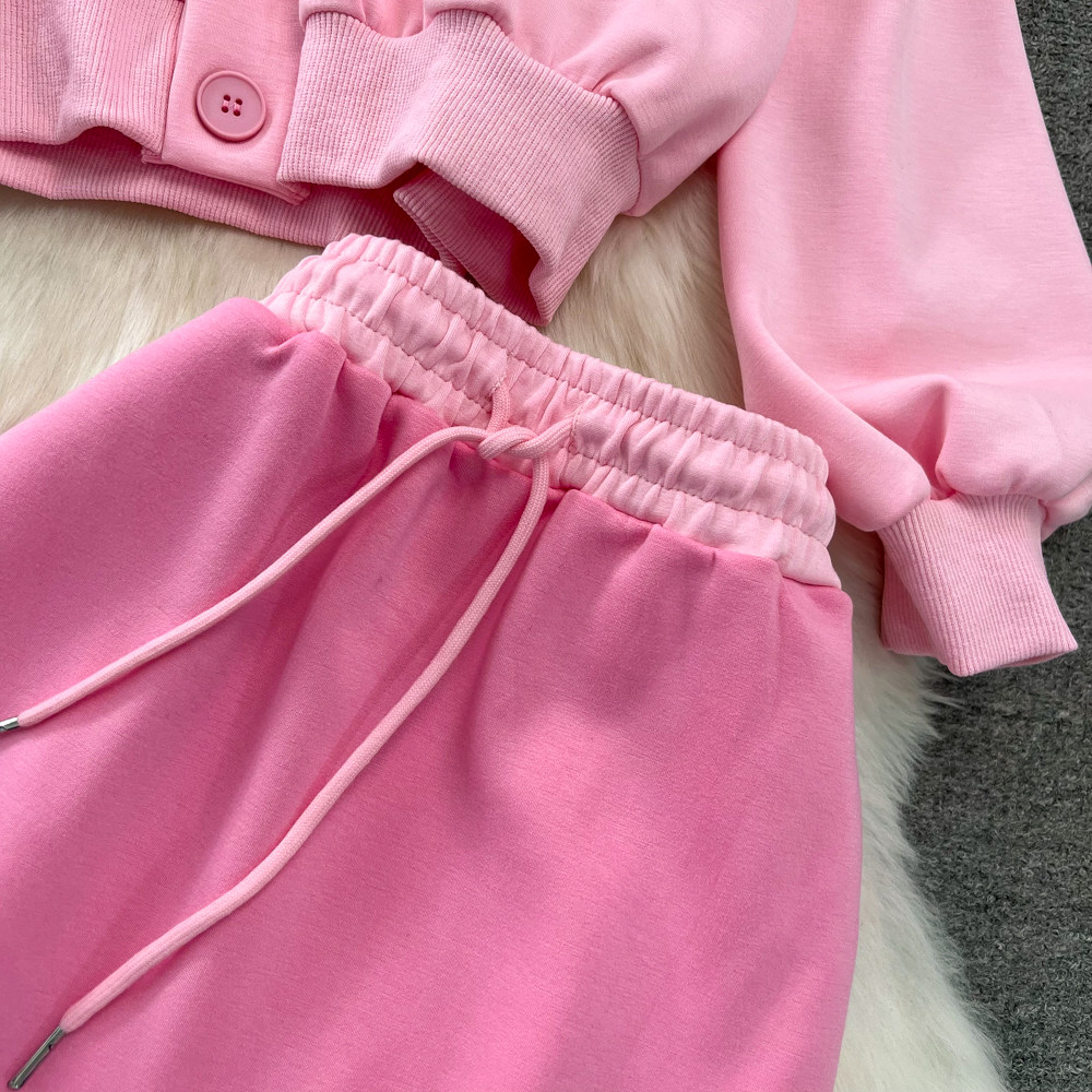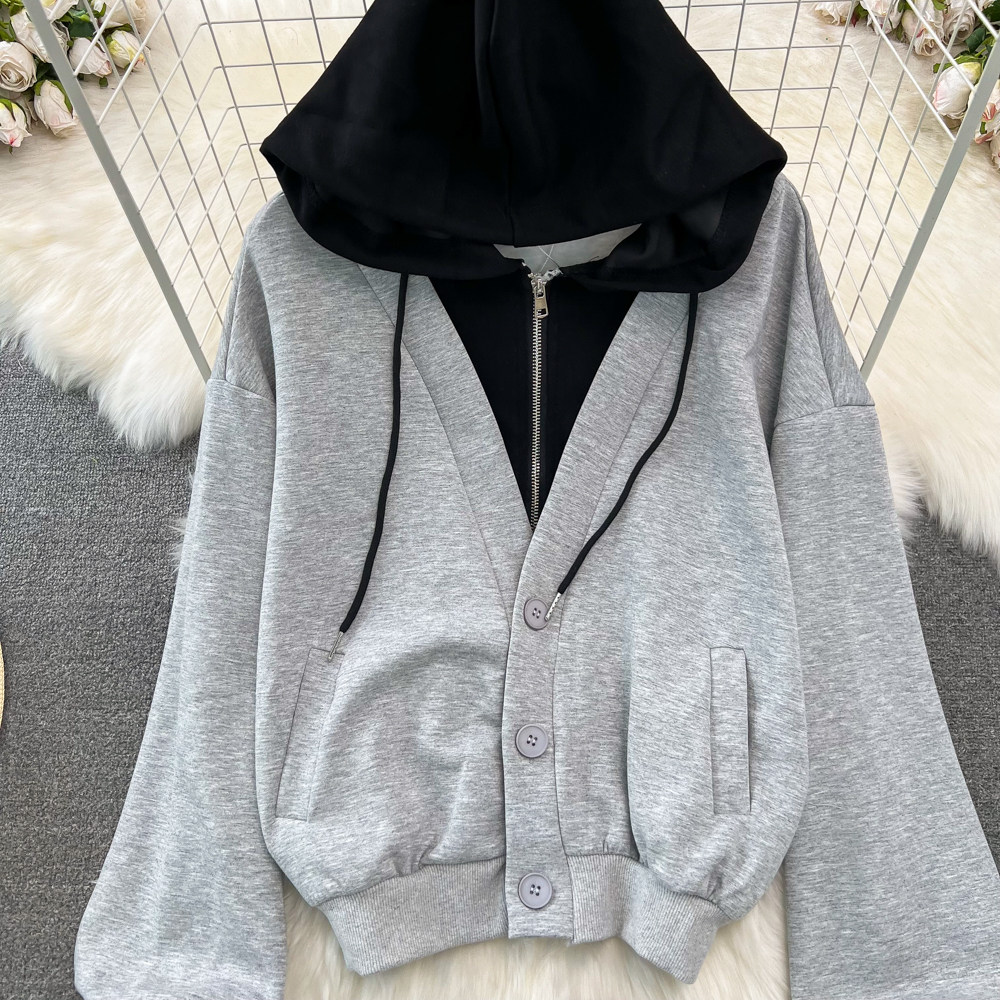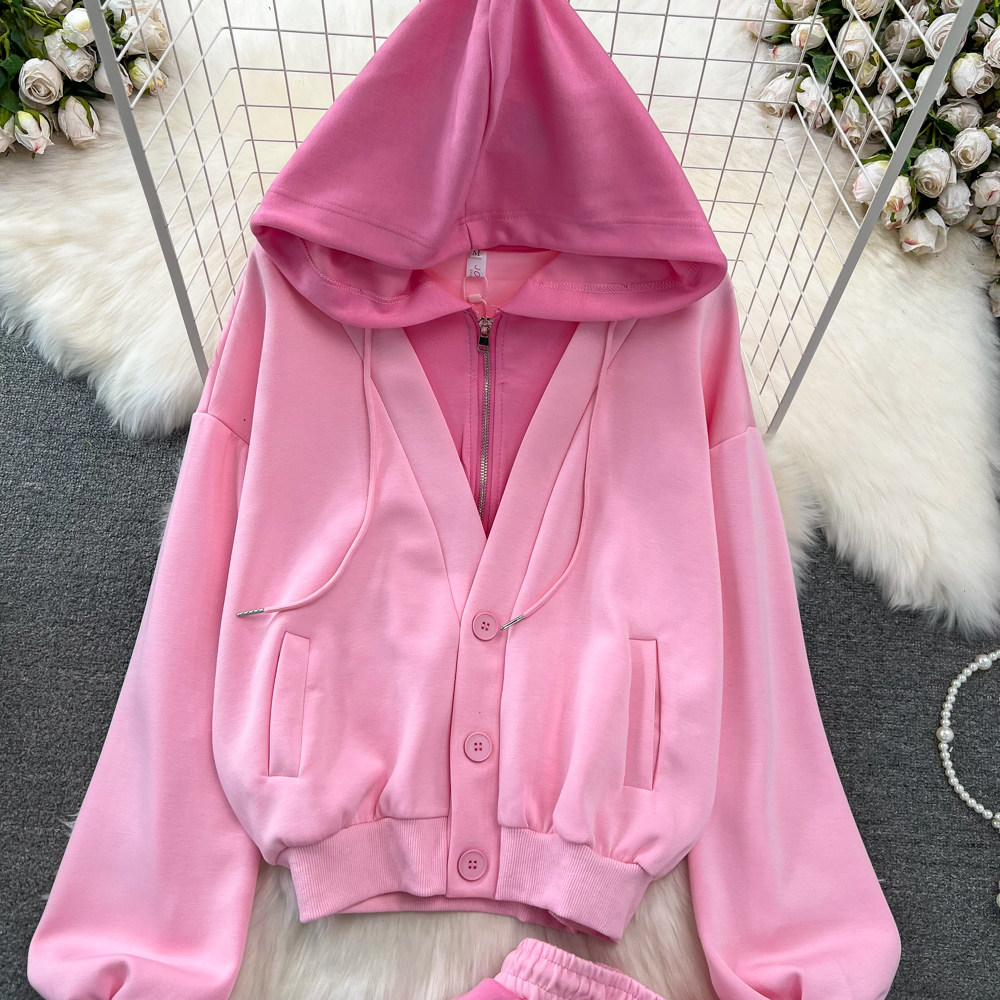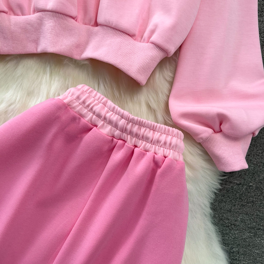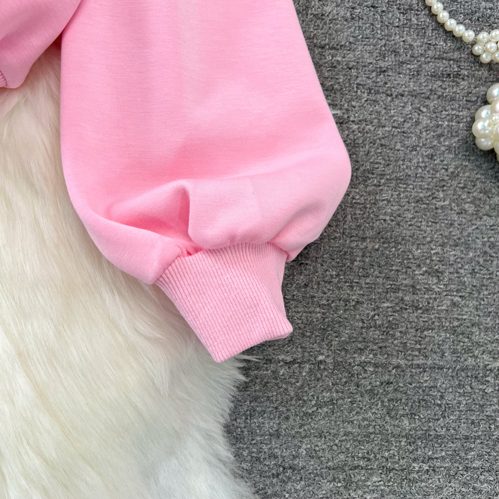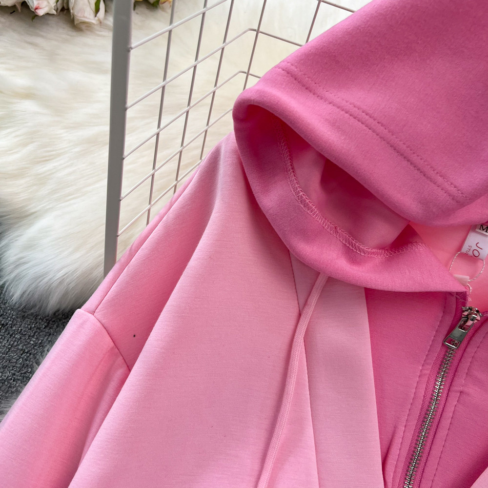 Комплект, лонгслив, толстовка с капюшоном, поясная сумка, юбка, в корейском стиле, высокая талия