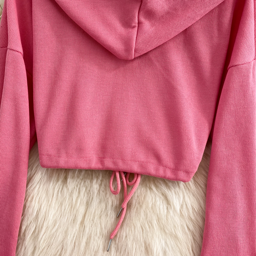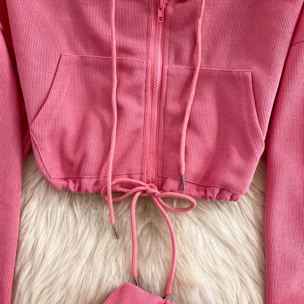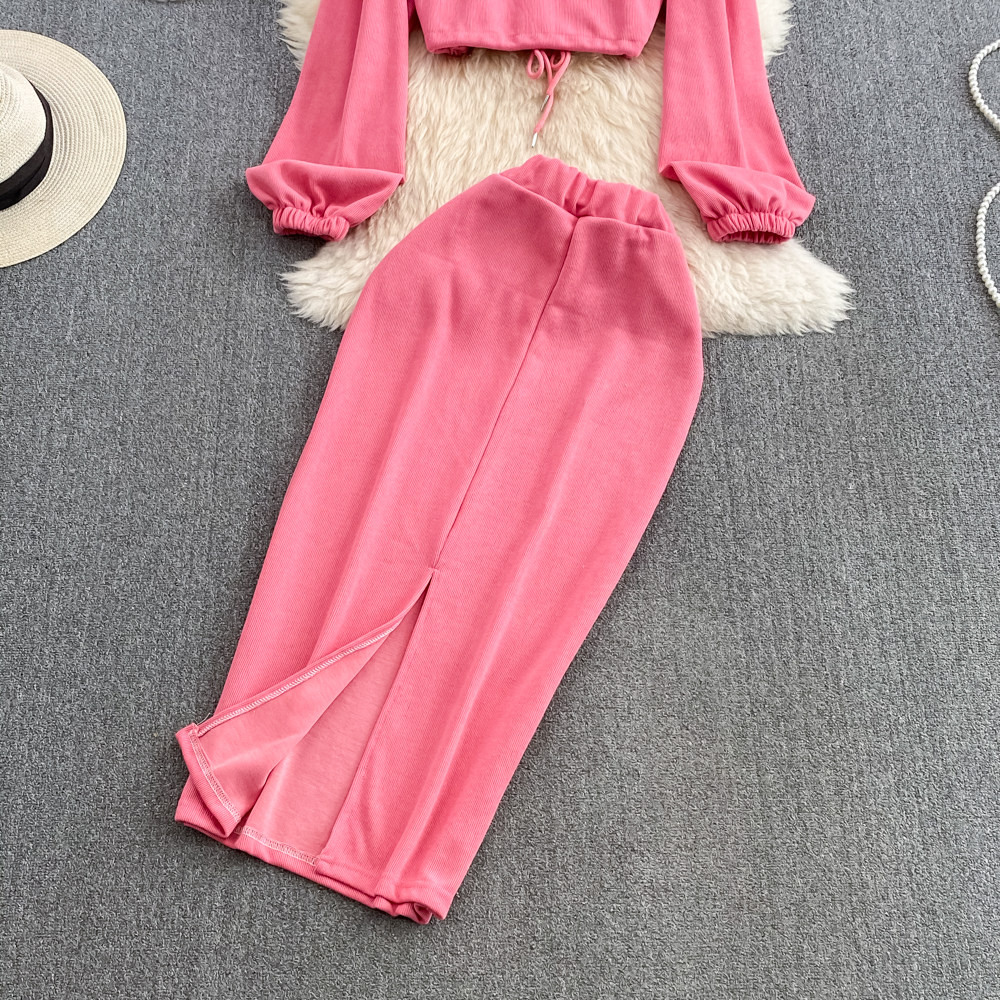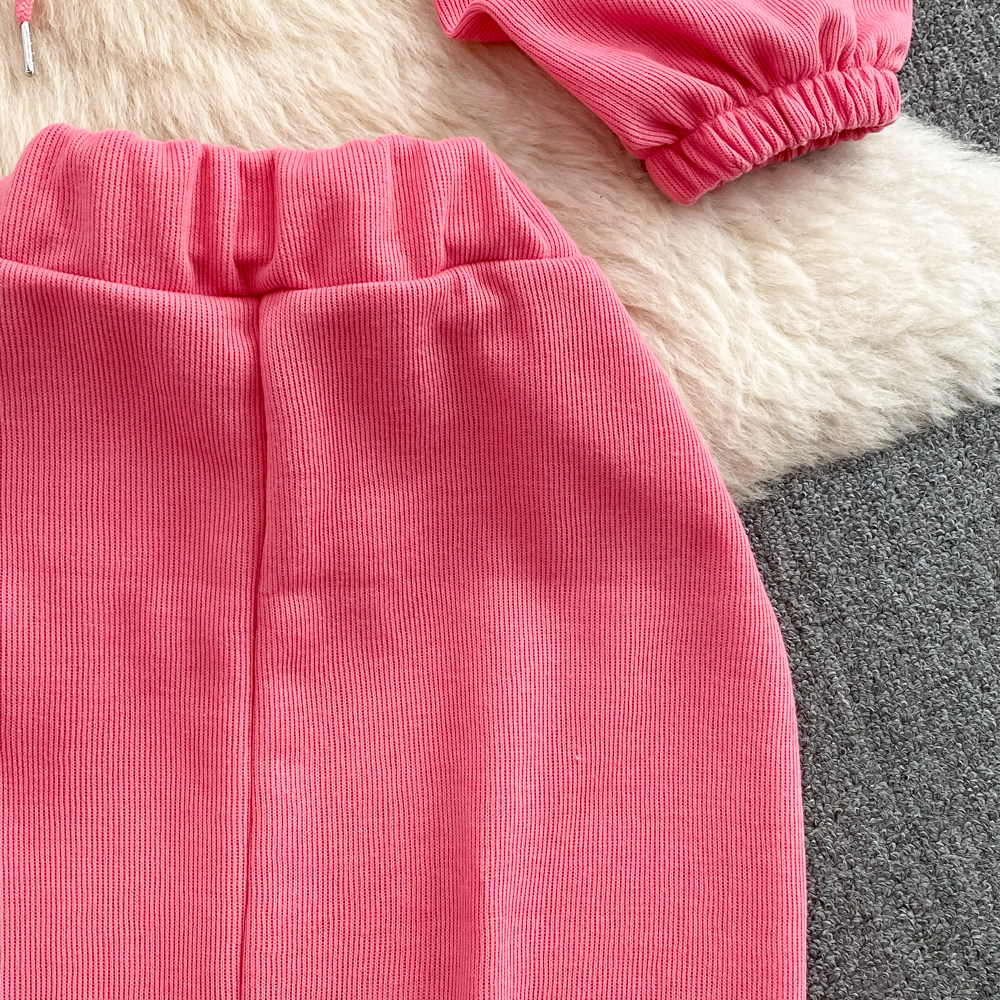 Комплект, приталенная толстовка с капюшоном с молнией, длинная юбка, в корейском стиле, средней длины