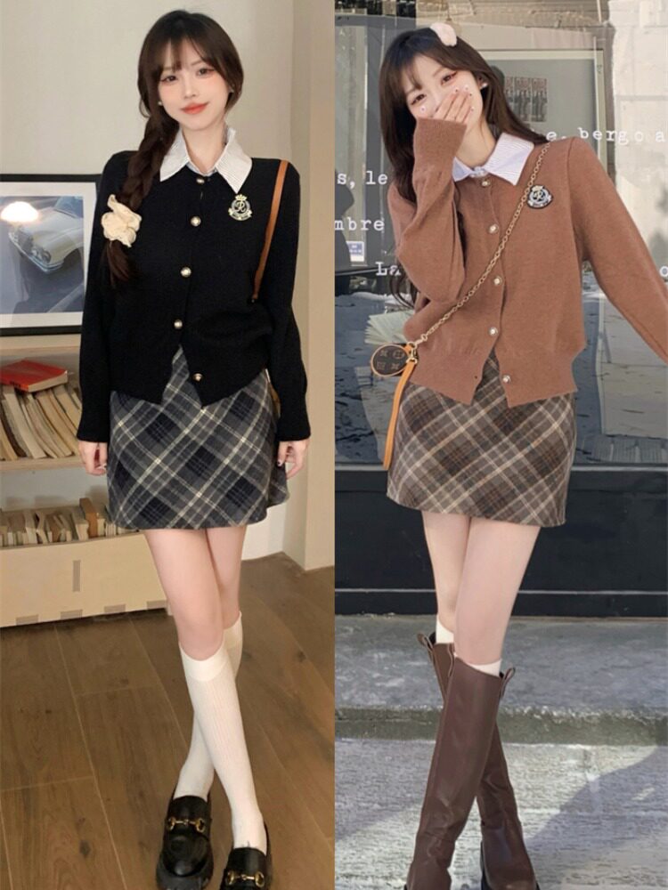 | Цвет: | Трикотажный свитер, Цветной трикотажный свитер, Хиге юбка, 格 Юбка |