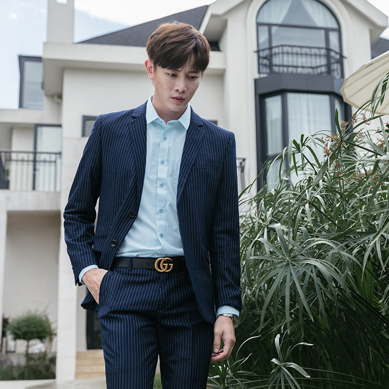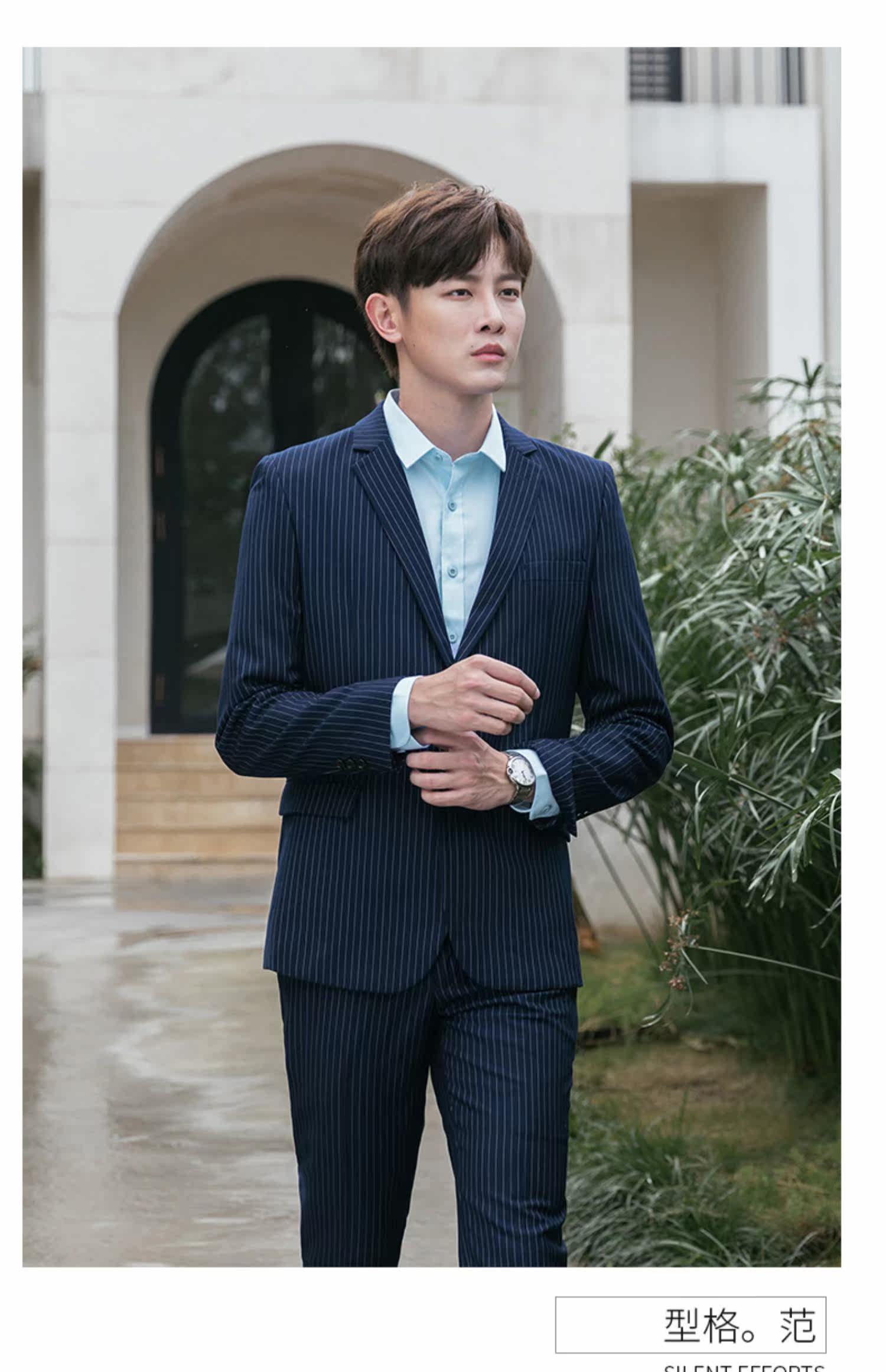 - Синий костюм + синие брюки + синяя рубашка (муж.)