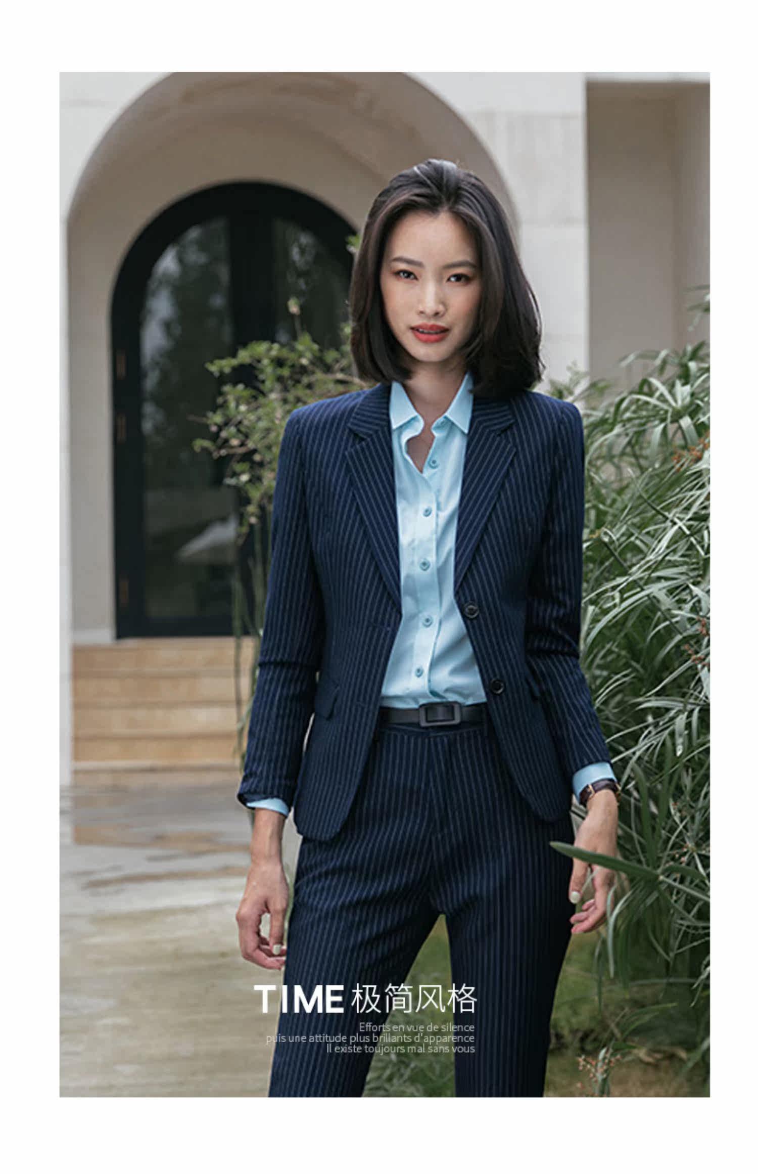 - Синий костюм + синие брюки + синяя рубашка (женская)