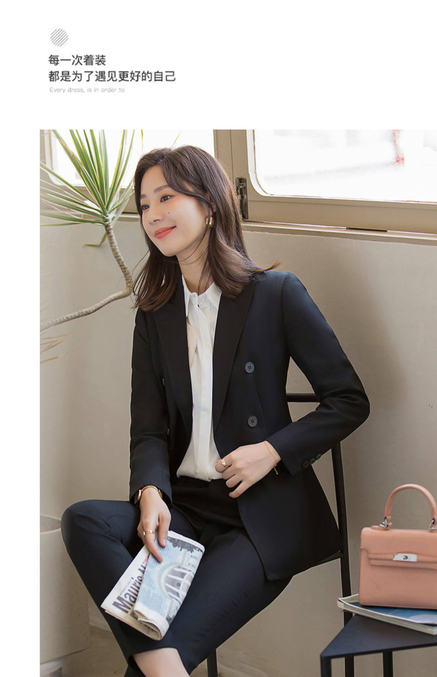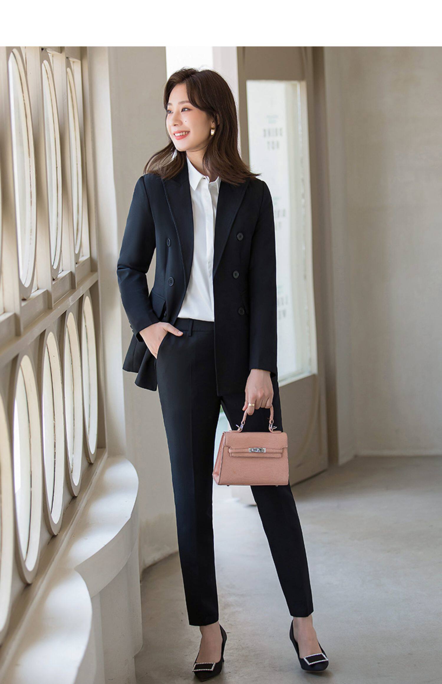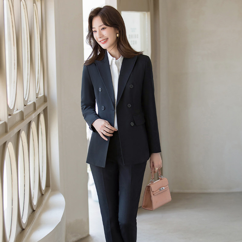 Классический костюм, комплект, осенний демисезонный черный пиджак классического кроя для работы, изысканный стиль