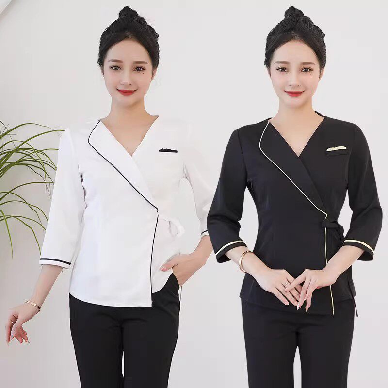 Демисезонный элитный комбинезон, для салонов красоты, облегающий крой, короткий рукав