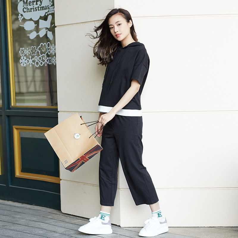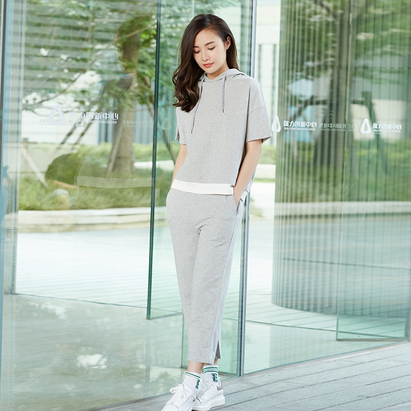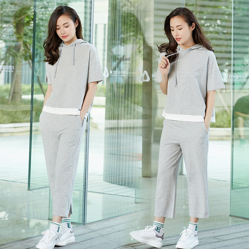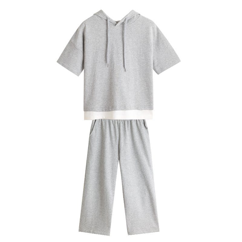 Розовый хлопковый комплект для отдыха, толстовка с капюшоном, хлопковые штаны, свободный крой
