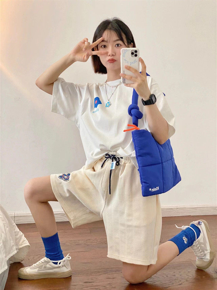 | Цвет: | Белая футболка, шорты, хлопковый комплект |