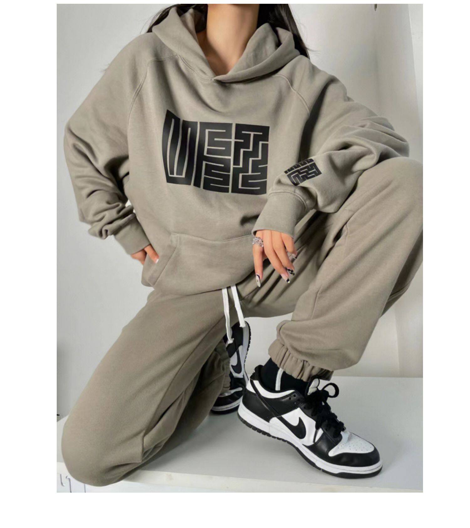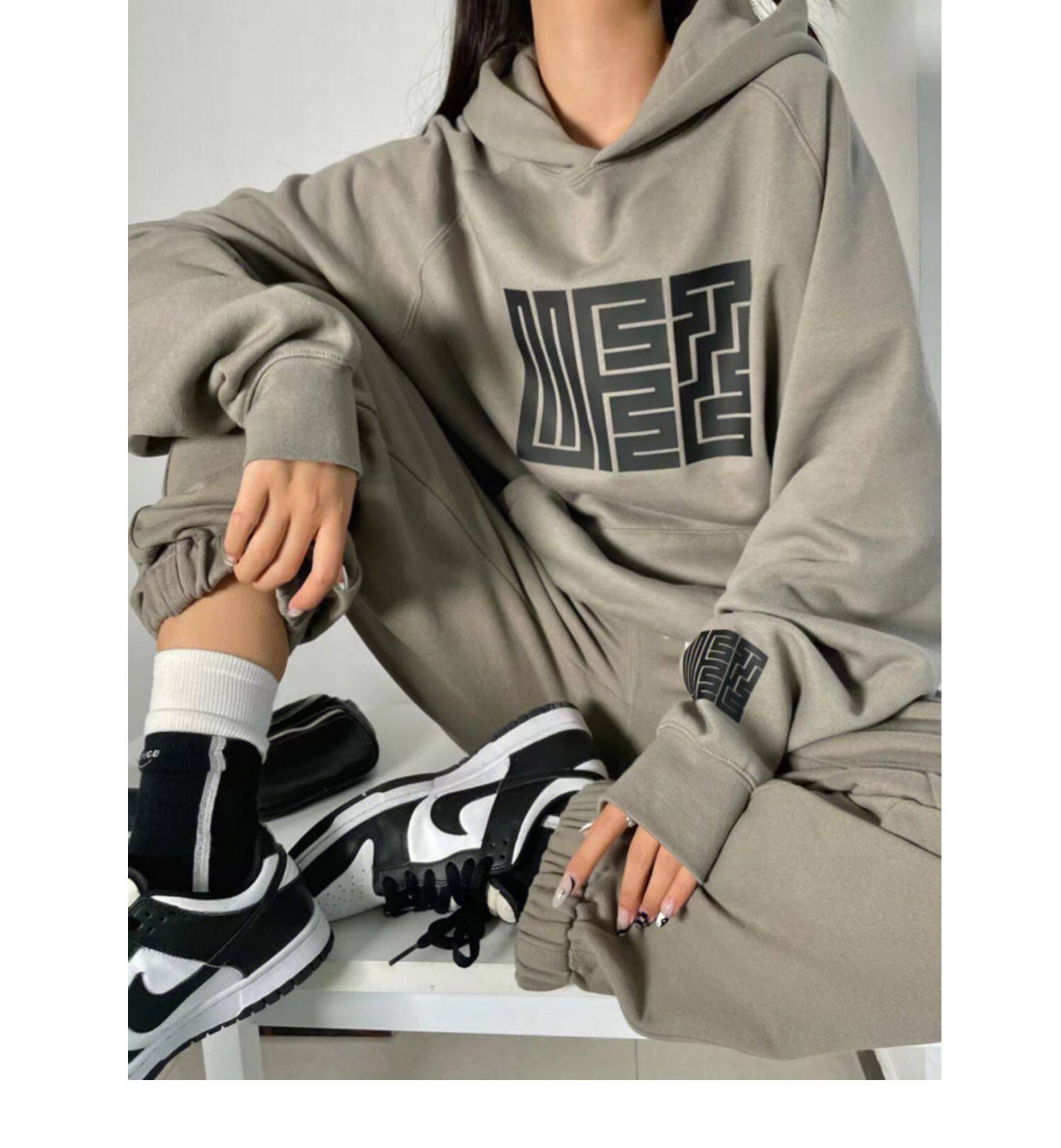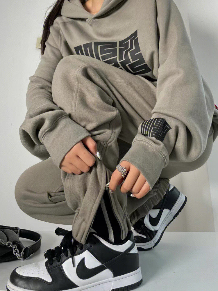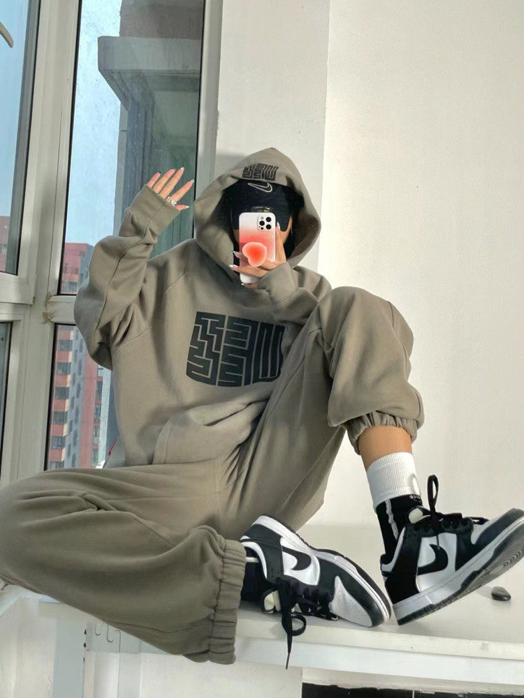 Модная утепленная толстовка для отдыха, осенний спортивный костюм, комплект, в американском стиле, оверсайз