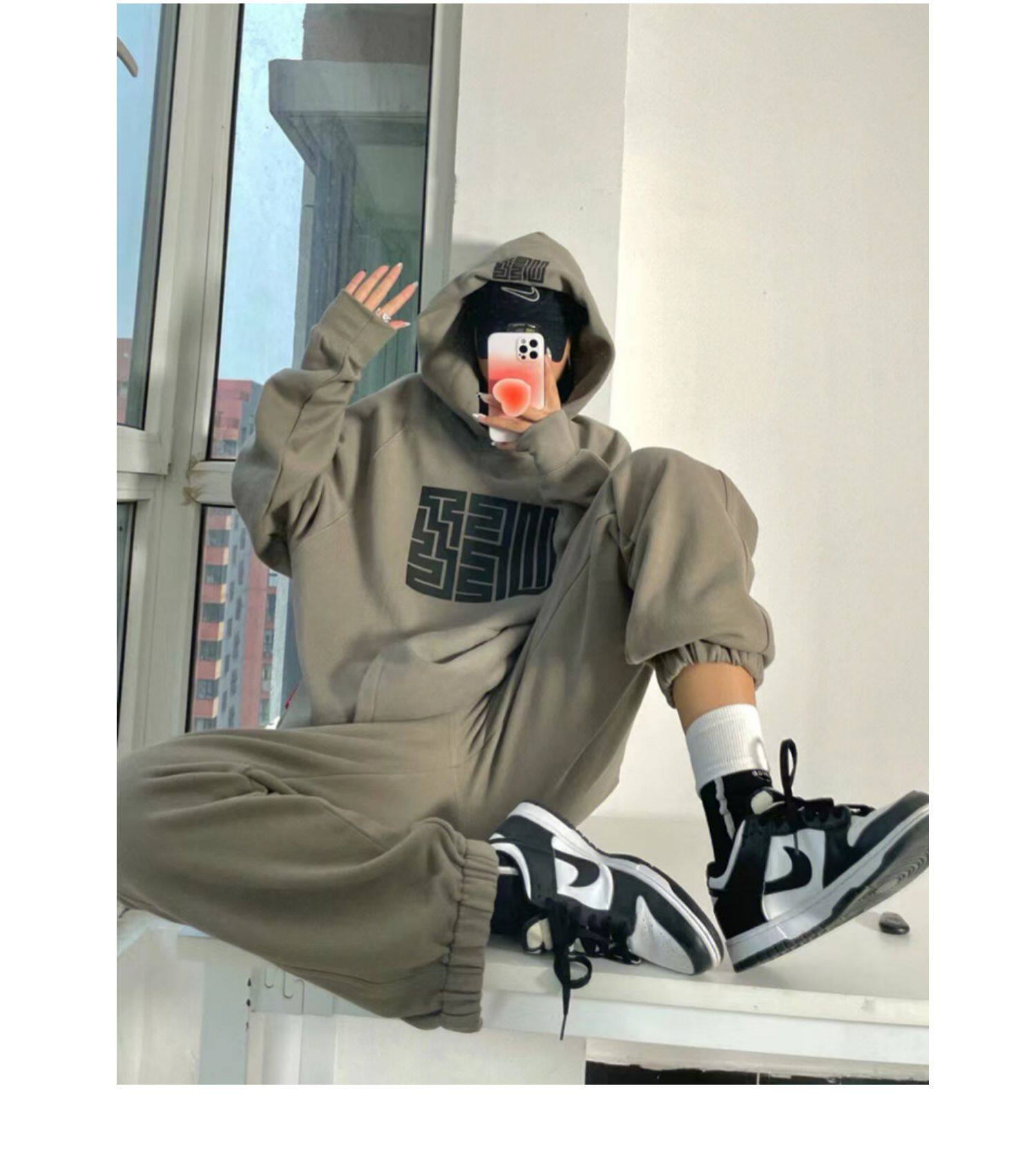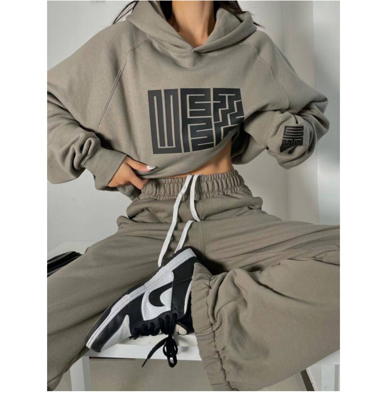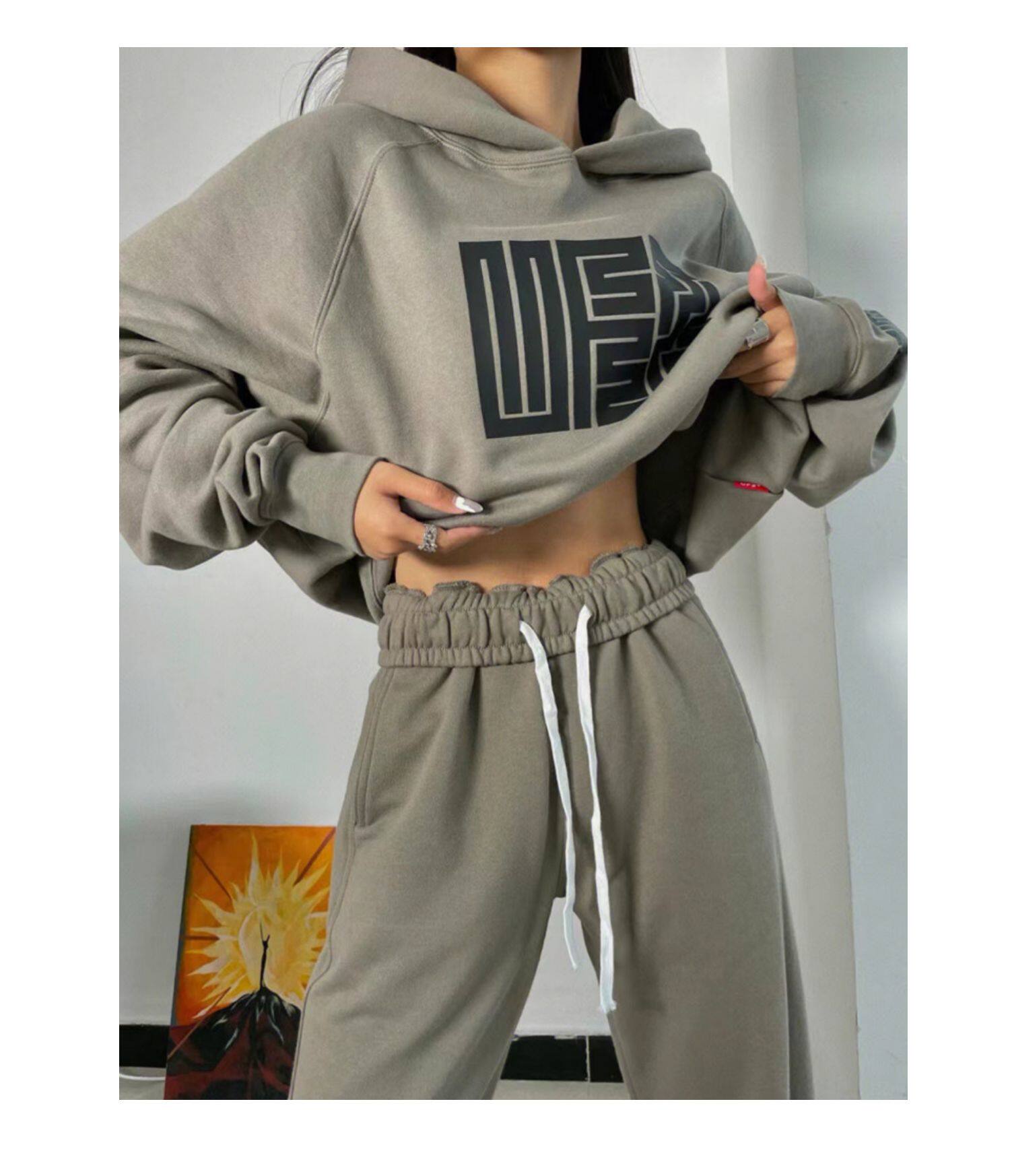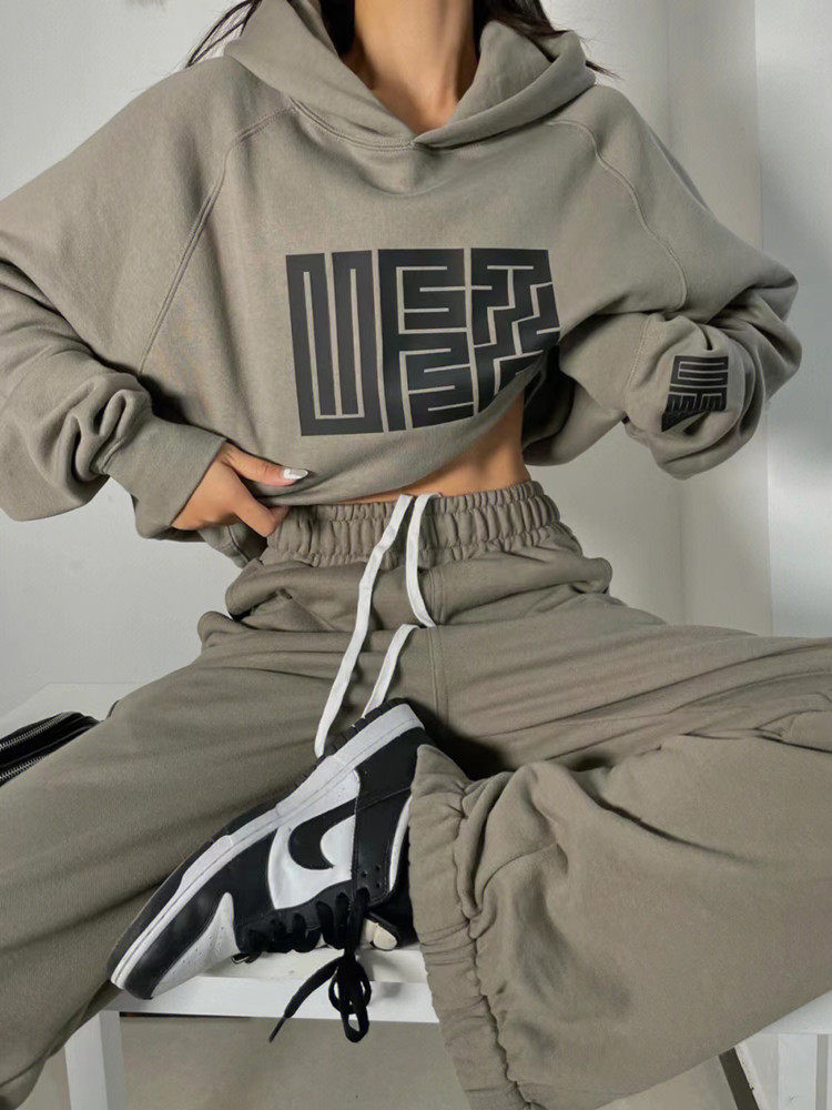 Модная утепленная толстовка для отдыха, осенний спортивный костюм, комплект, в американском стиле, оверсайз