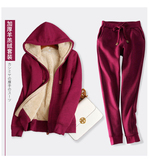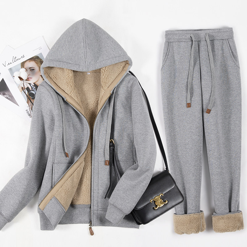 Утепленный спортивный костюм, комплект, лонгслив с капюшоном, куртка, штаны, простой и элегантный дизайн, по фигуре