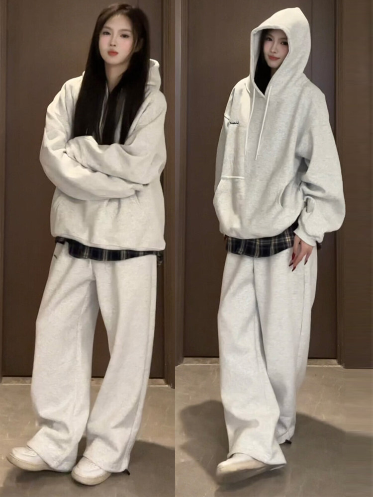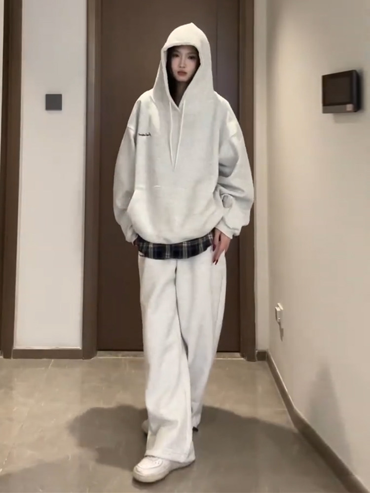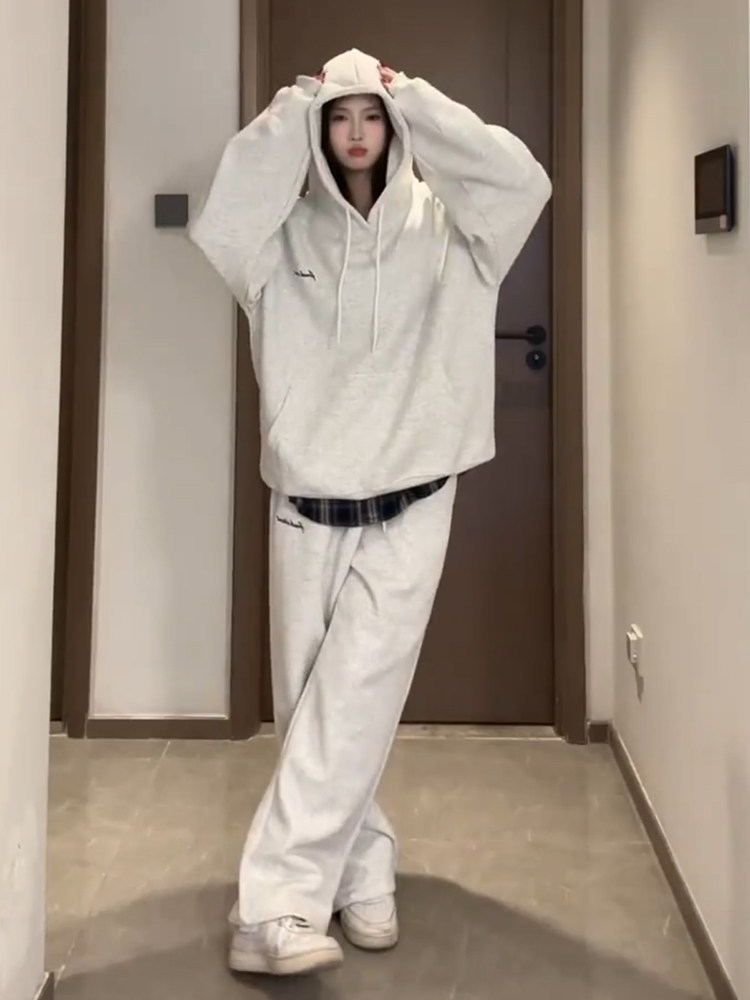 Спортивный костюм, толстовка с капюшоном, штаны для школьников и студентов, комплект, оверсайз