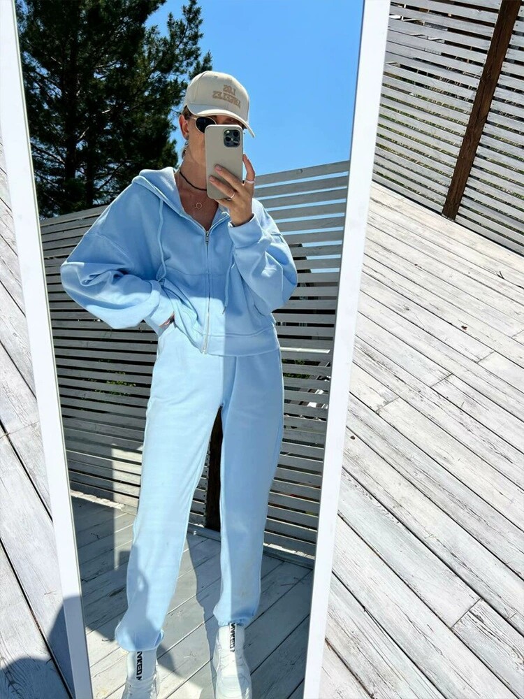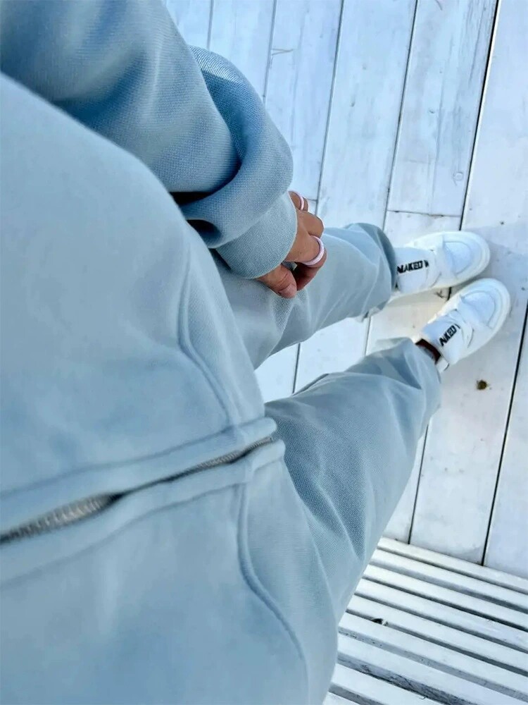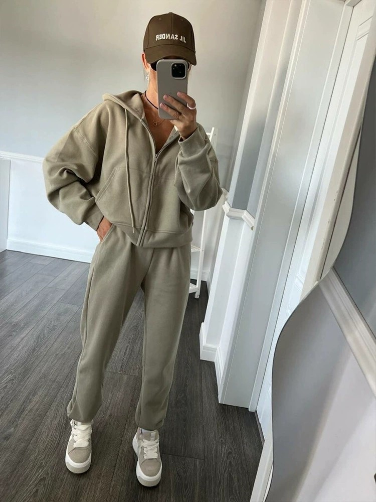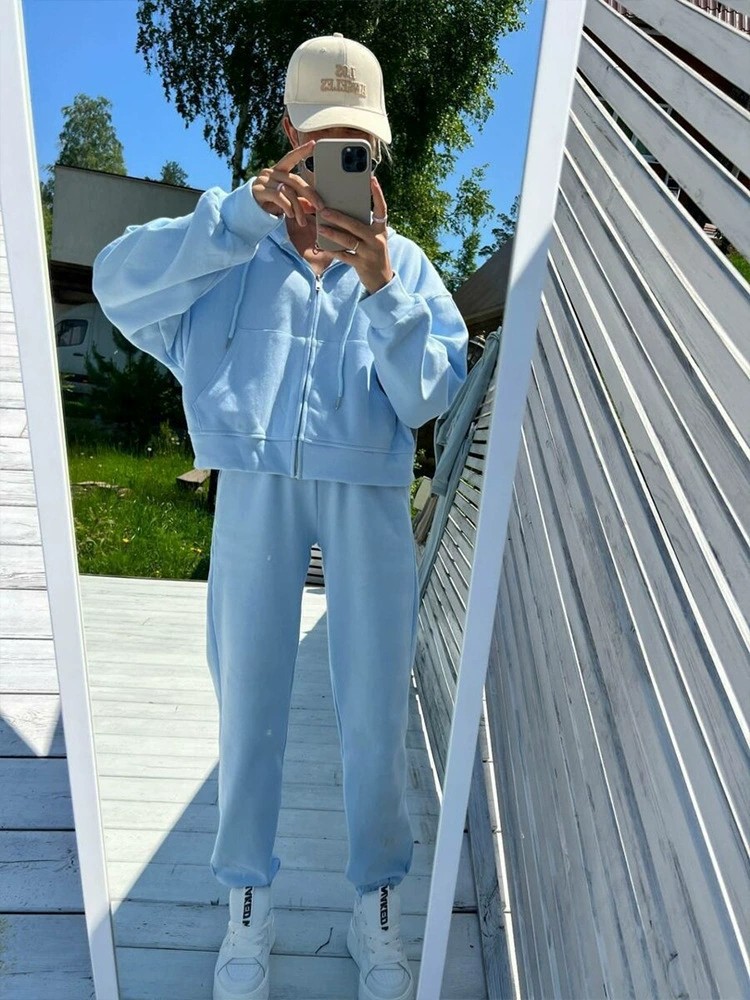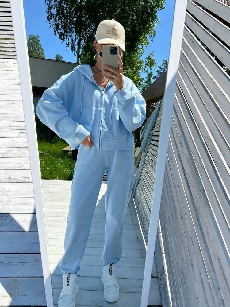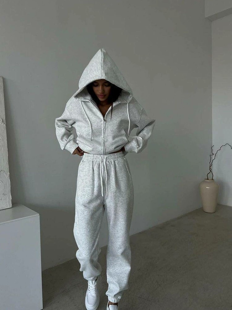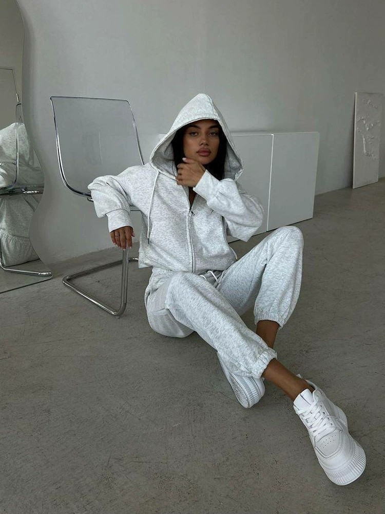 Повседневный стиль в европейском и американском стиле 𫔮Застежки-молнии 𫔀Комплект из топа и брюк с капюшоном Комплект из топа и брюк с капюшоном на молнии