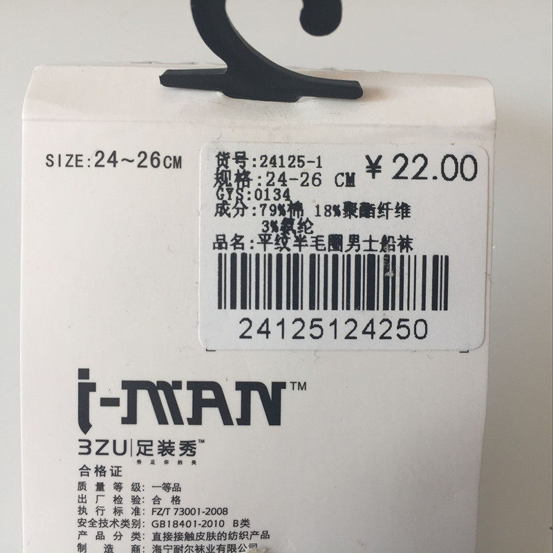 3ZU обувь показывает аутентичные весенне-осенние чесаные хлопковые впитывающие пот полумахровые мужские носки-лодочки 24125-1