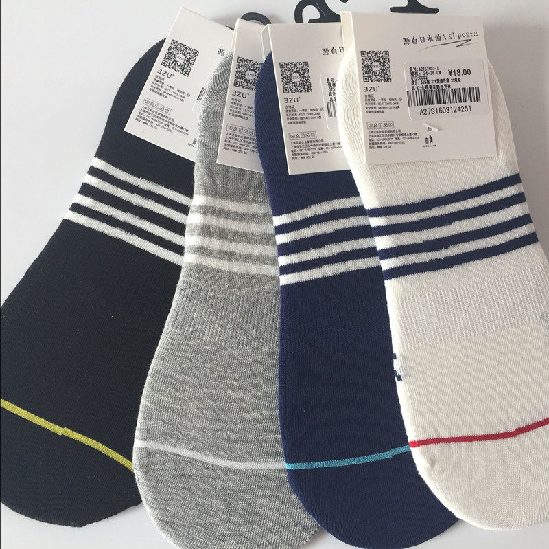 3ZU показывает аутентичные мужские невидимые носки из чесаного хлопка весенне-осеннего сезона, впитывающие влагу, A27S1603