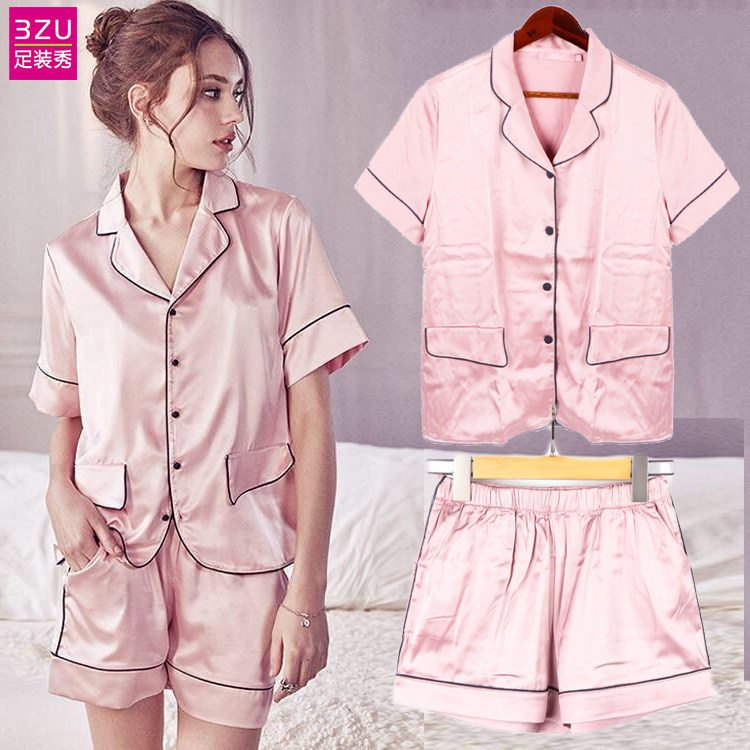 Летняя пижама, шорты, штаны, шелковый комплект, короткий рукав