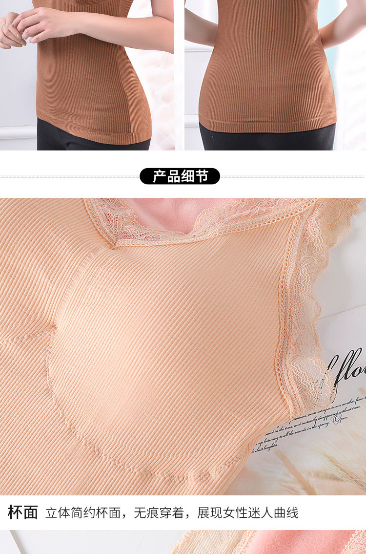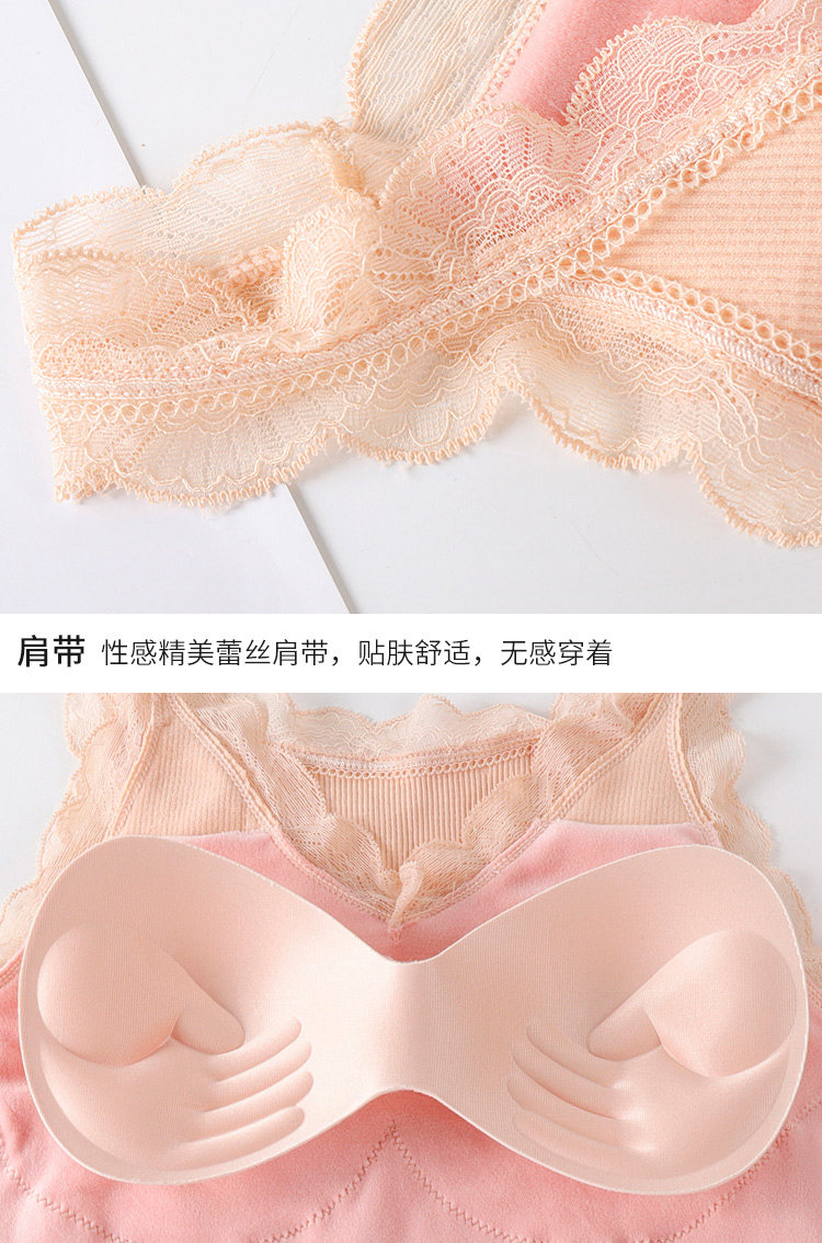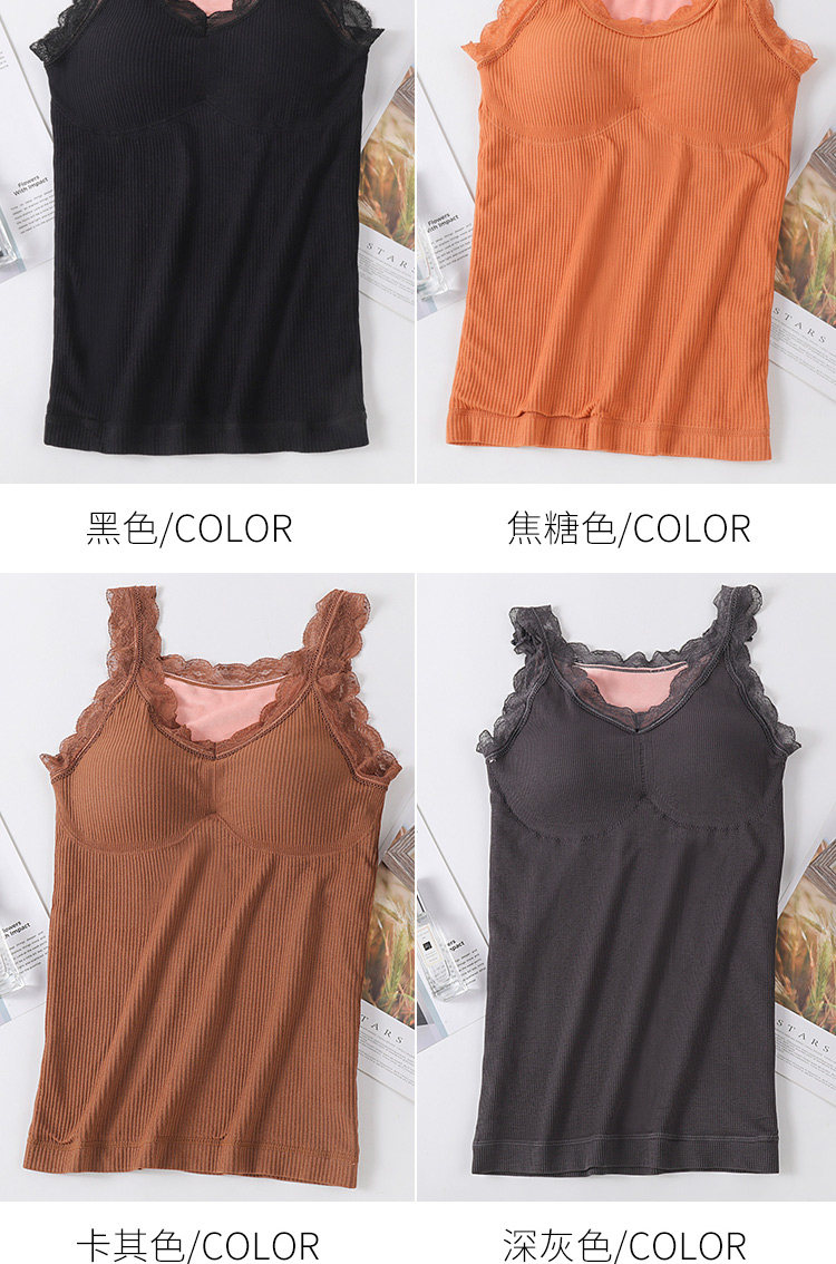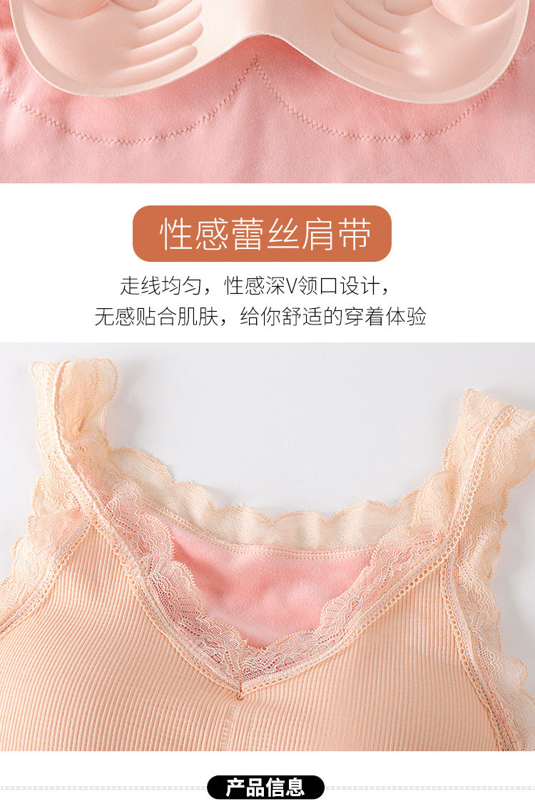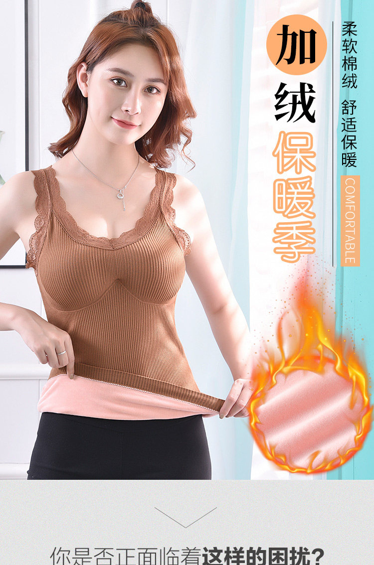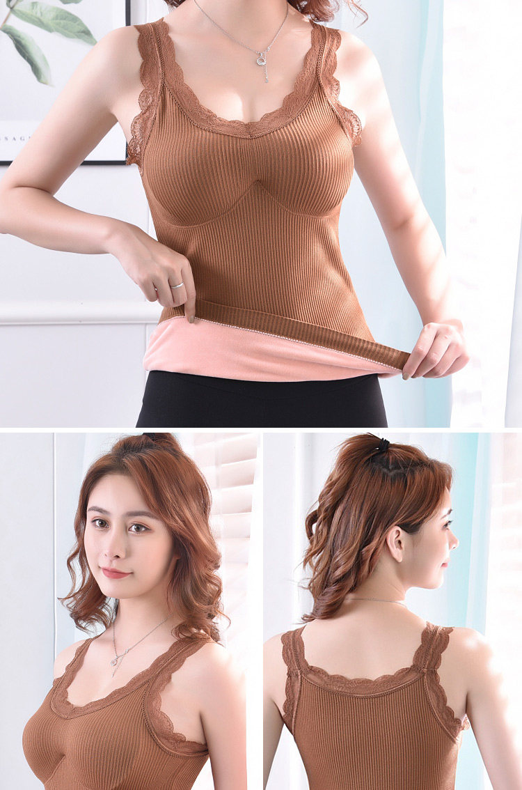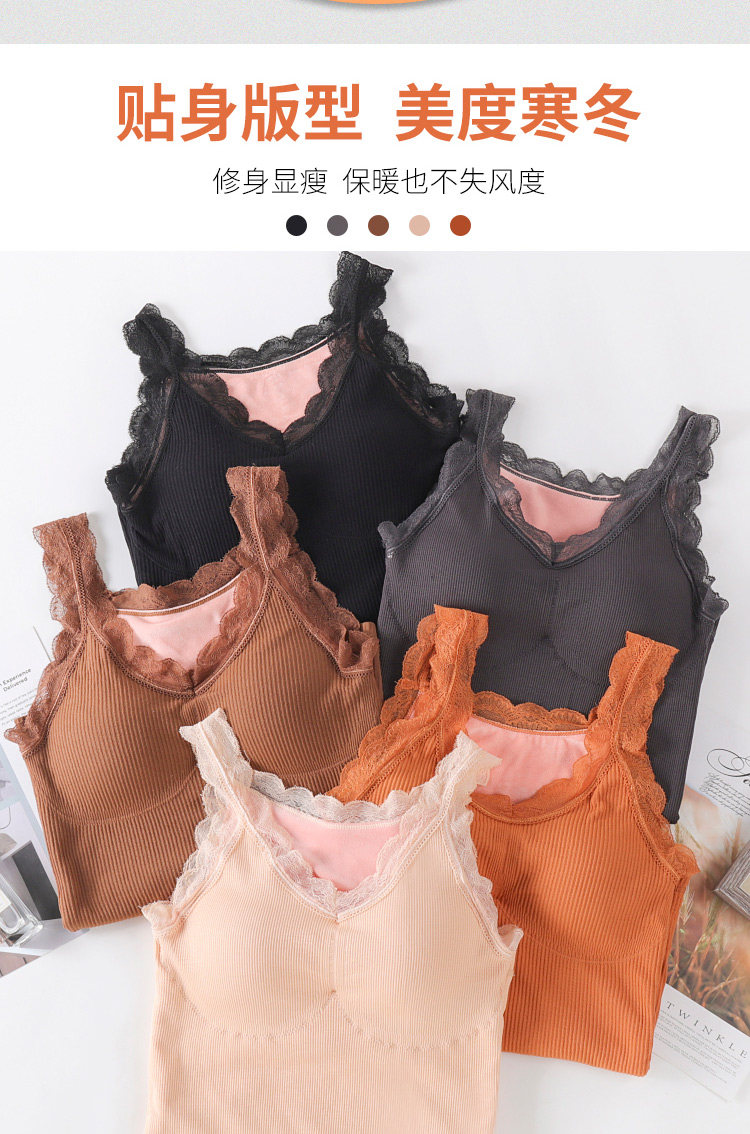 Демисезонная удерживающая тепло флисовая майка топ, кружевной сексуальный удерживающий тепло топ с чашечками, бюстгальтер-топ, увеличенная толщина, V-образный вырез