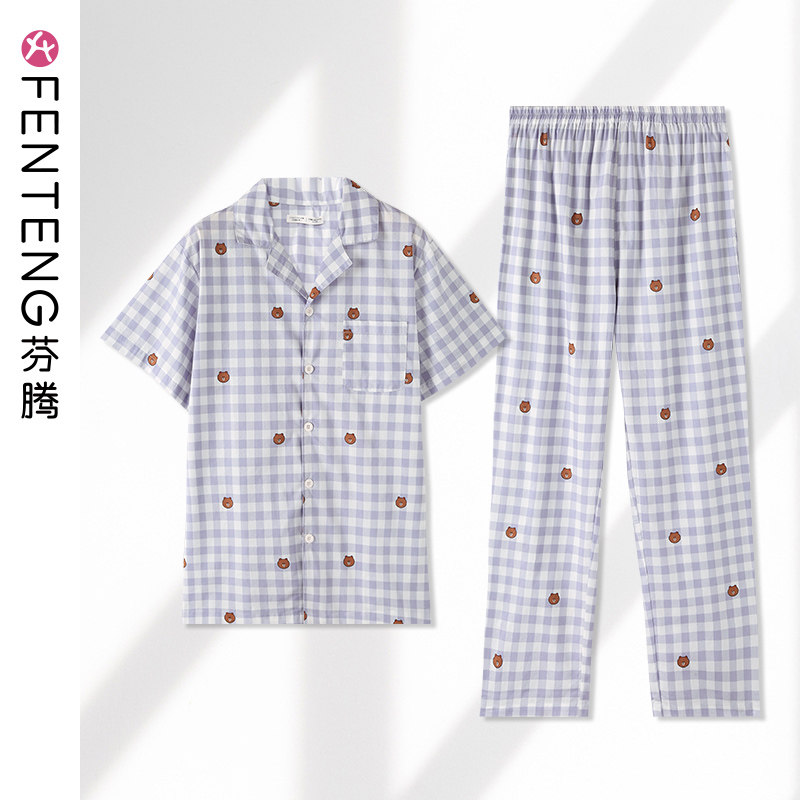 芬腾 Тонкая пижама, мужской хлопковый комплект, короткий рукав, для влюбленных
