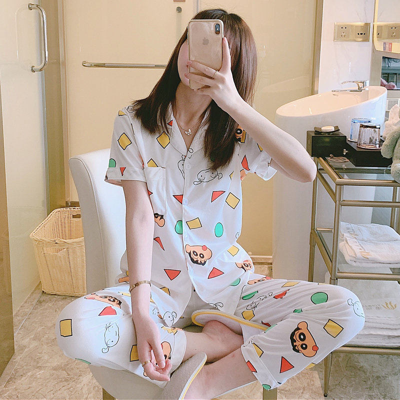 Летняя осенняя пижама, хлопковые штаны для школьников и студентов, милый комплект для отдыха, в корейском стиле, короткий рукав
