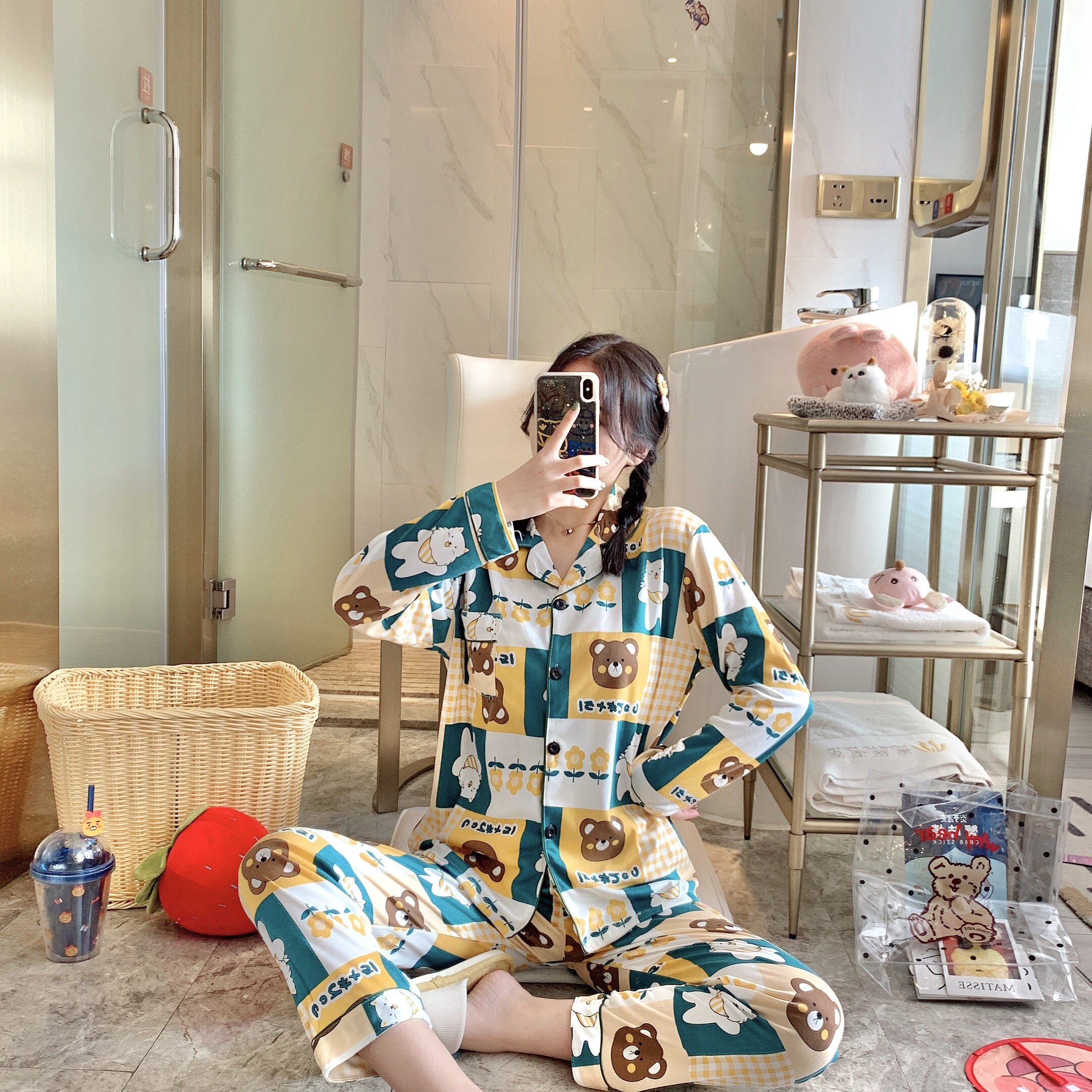Демисезонный хлопковый лонгслив, кардиган, зимняя пижама для школьников и студентов, мультяшный комплект для отдыха