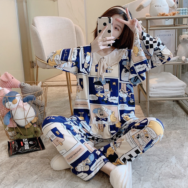 Осенняя пижама, хлопковый лонгслив для школьников и студентов, милый тканевый мешок для отдыха, комплект, оверсайз
