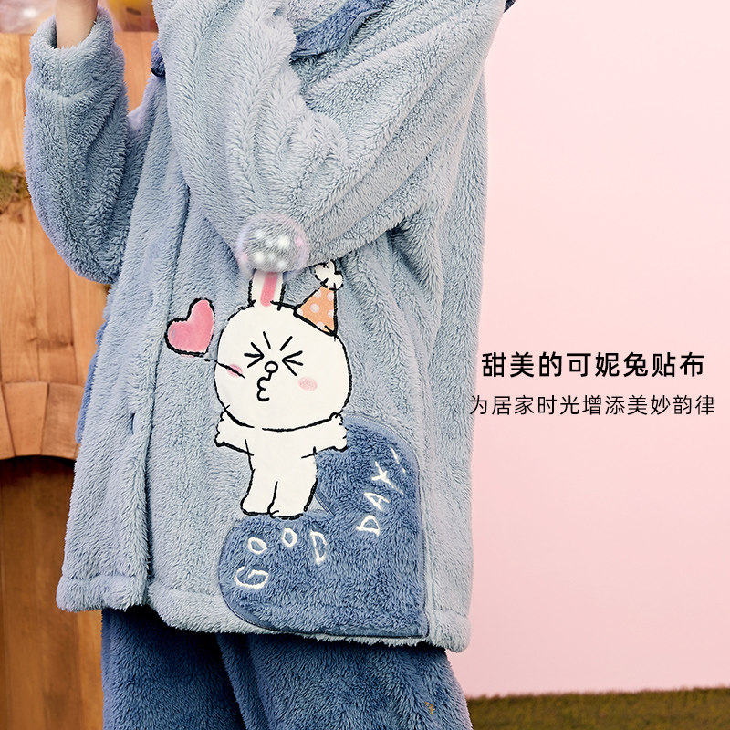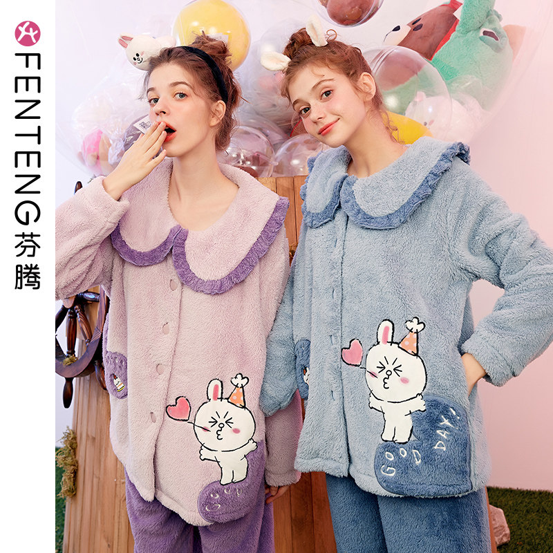 芬腾 Коралловая бархатная демисезонная пижама, милый фланелевый бархатный лонгслив, утепленный комплект, в корейском стиле